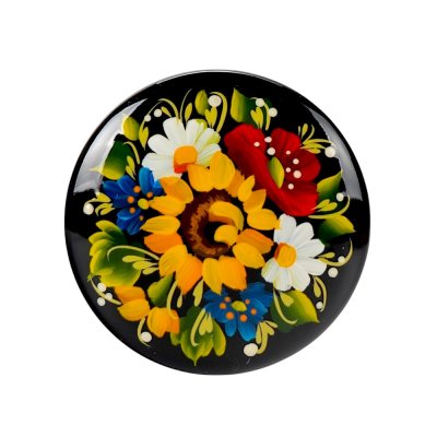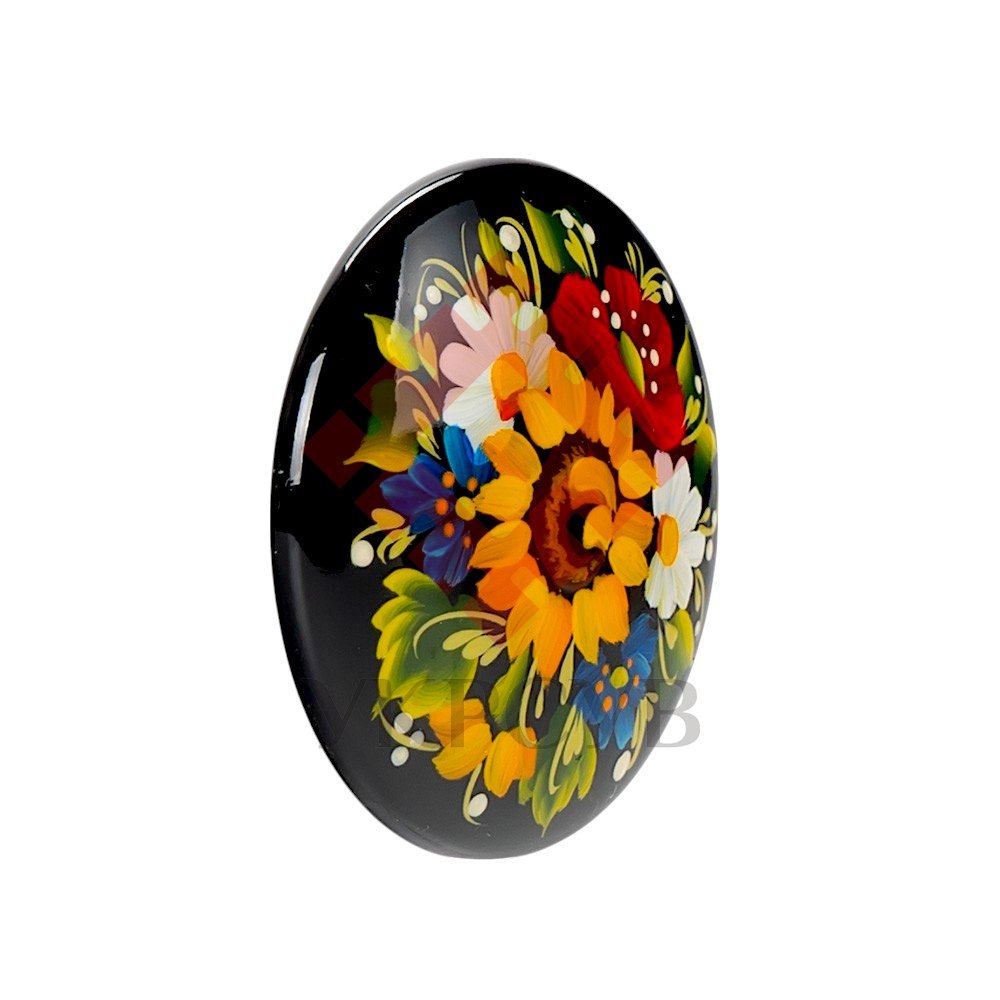 Брошка розписана в техніці Петриківський розпис. Ручний розпис, авторська робота. Матеріал виробу: дерево