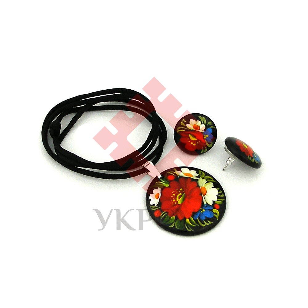 Набір прикрас розписаний в техніці Петриківський розпис. Ручний розпис, авторська робота. Матеріал виробу: дерево