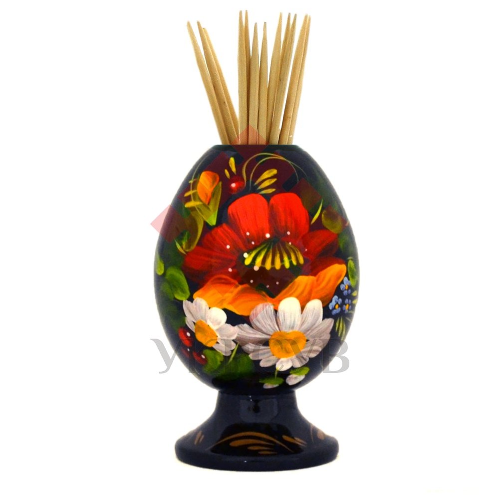 Підставка для зубочисток розписана в техніці Петриківський розпис. Ручний розпис, авторська робота. Матеріал виробу: дерево