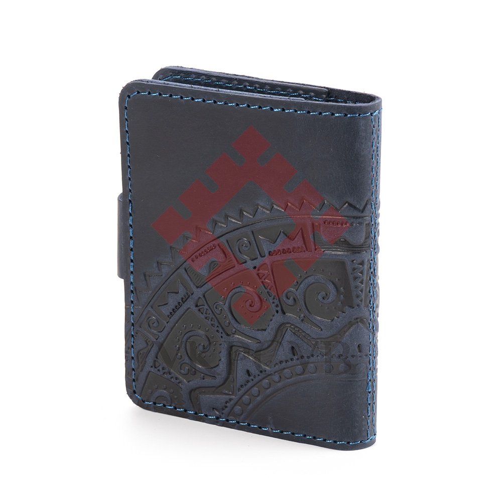 Візитниця "Півкола", темно-синяОбкладинка виконана з натуральної шкіри з тисненням орнаменту. Ця візитниця буде надійно зберігати візитки, дисконтні або кредитні картки.Загальна інформація Матеріл: 100% шкіра |