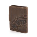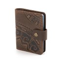 Візитниця "Півкола", темно-коричневаОбкладинка виконана з натуральної шкіри з тисненням орнаменту. Ця візитниця буде надійно зберігати візитки, дисконтні або кредитні картки.Загальна інформація Матеріл: 100% шкіра |