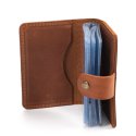 Візитниця "Півкола", коньякОбкладинка виконана з натуральної шкіри з тисненням орнаменту. Ця візитниця буде надійно зберігати візитки, дисконтні або кредитні картки.Загальна інформація Матеріл: 100% шкіра |