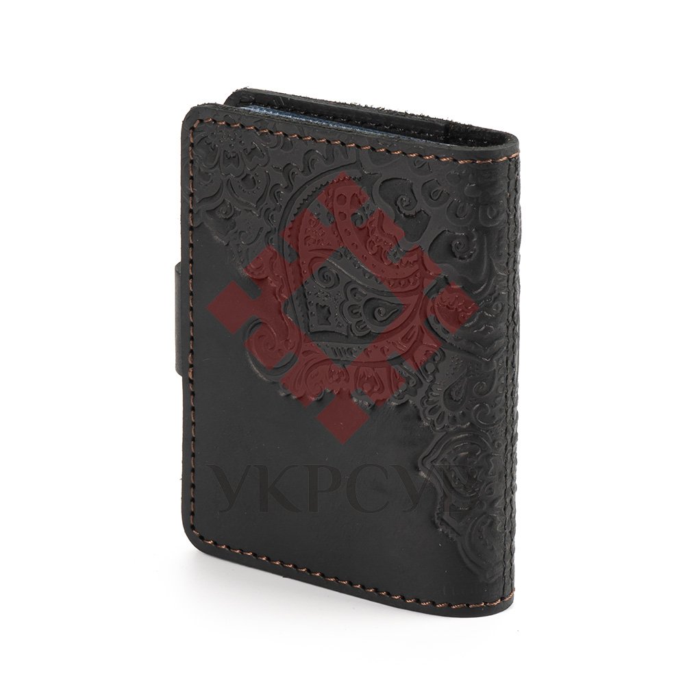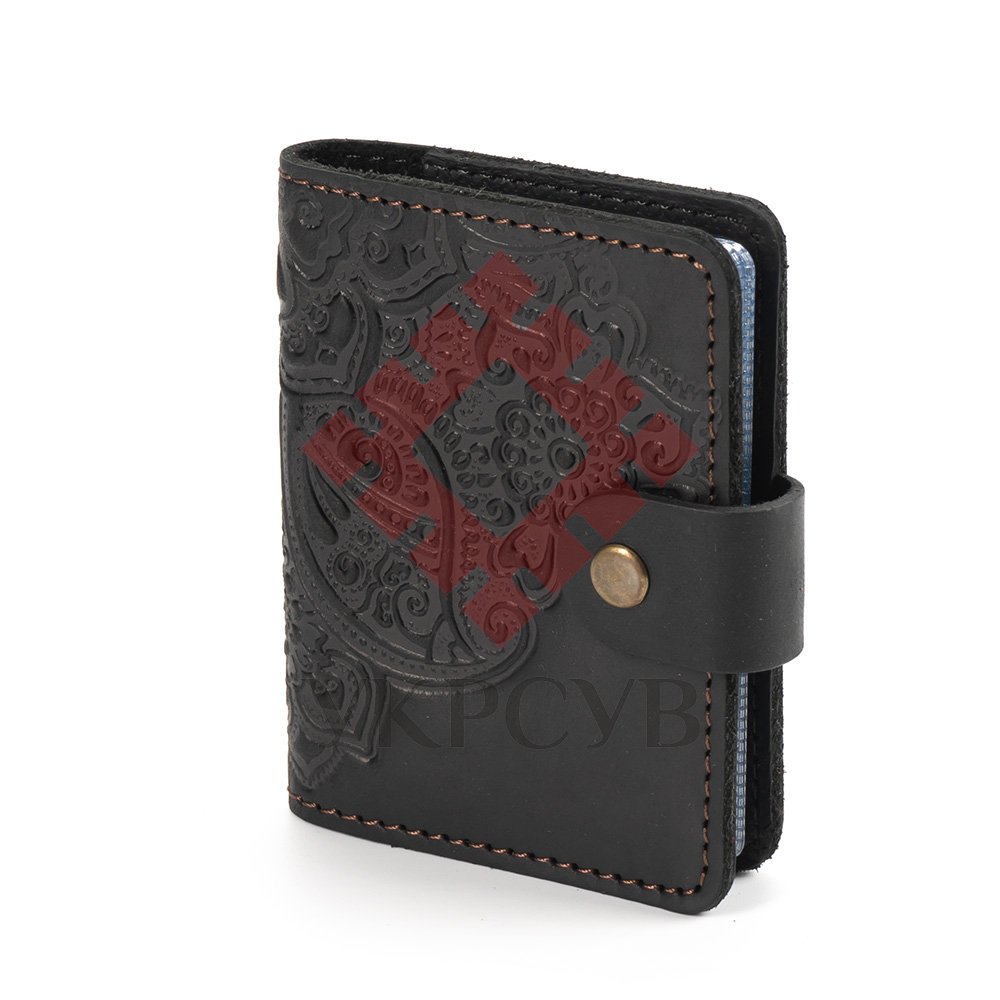 Візитниця"Квіти", чорнаОбкладинка виконана з натуральної шкіри з тисненням орнаменту. Ця візитниця буде надійно зберігати візитки, дисконтні або кредитні картки.Загальна інформація Матеріл: 100% шкіра |