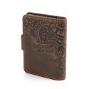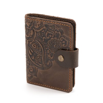 Візитниця"Квіти", темно-коричневаОбкладинка виконана з натуральної шкіри з тисненням орнаменту. Ця візитниця буде надійно зберігати візитки, дисконтні або кредитні картки.Загальна інформація Матеріл: 100% шкіра |