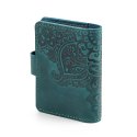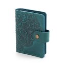 Візитниця"Квіти", бірюзаОбкладинка виконана з натуральної шкіри з тисненням орнаменту. Ця візитниця буде надійно зберігати візитки, дисконтні або кредитні картки.Загальна інформація Матеріл: 100% шкіра |