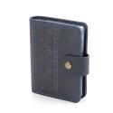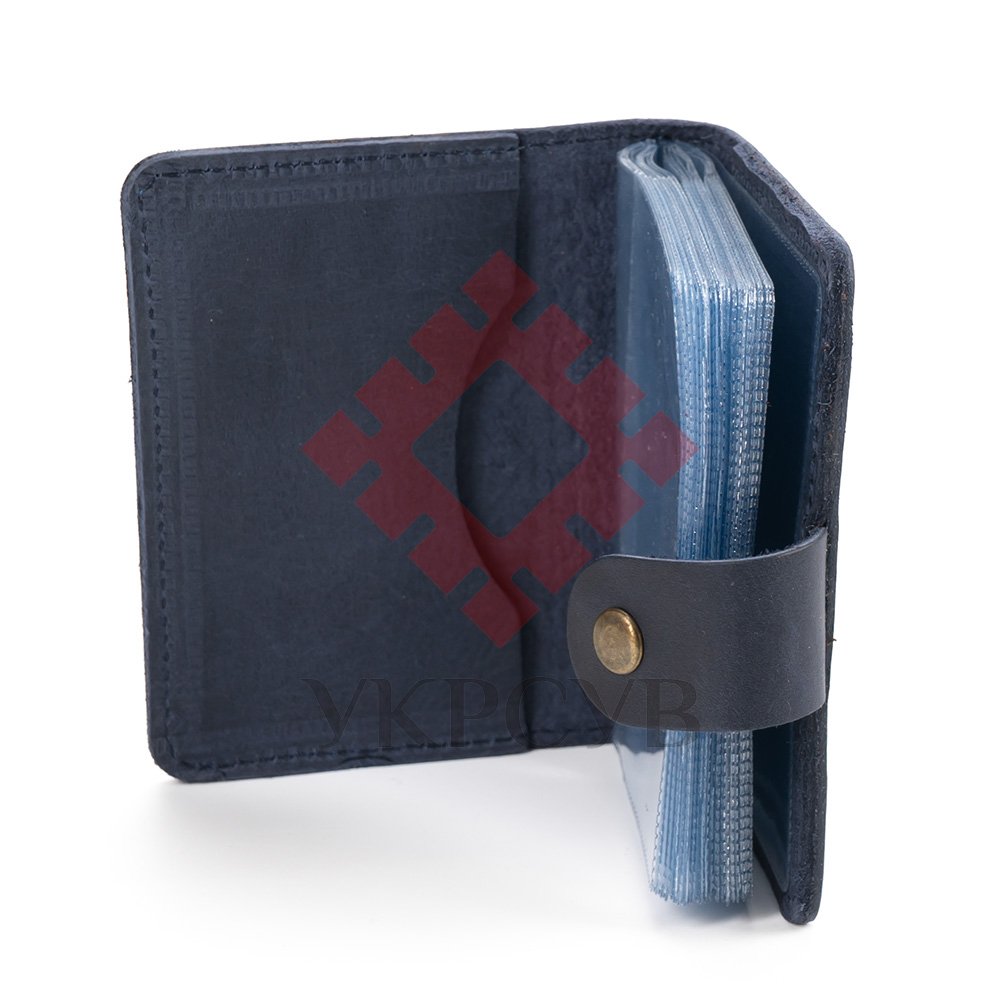 Візитниця "Вишивка" темно-синяОбкладинка виконана з натуральної шкіри з тисненням орнаменту. Ця візитниця буде надійно зберігати візитки, дисконтні або кредитні картки.Загальна інформація Матеріл: 100% шкіра |