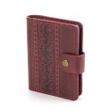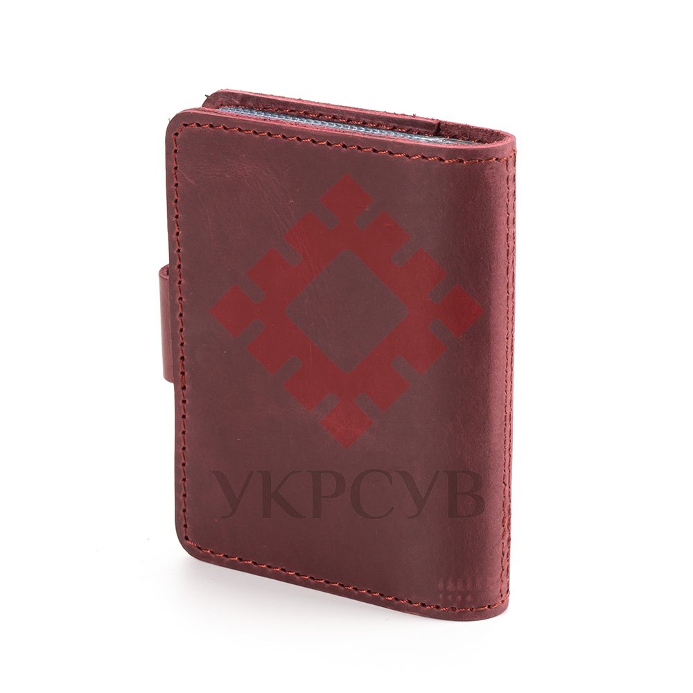 Візитниця "Вишивка" бордоОбкладинка виконана з натуральної шкіри з тисненням орнаменту. Ця візитниця буде надійно зберігати візитки, дисконтні або кредитні картки.Загальна інформація Матеріл: 100% шкіра |