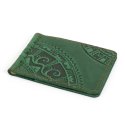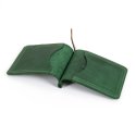 Зажим для грошей "Півкола", зеленийЗажим виконаний з натуральної шкіри та прикрашений візерунком, що виконаний у техніці тиснення. Такий зажим буде практичним, довговічним та зручним у використанні. Всередині є окремі два відділи для карток.Загальна інформація Матеріл: 100% шкіра