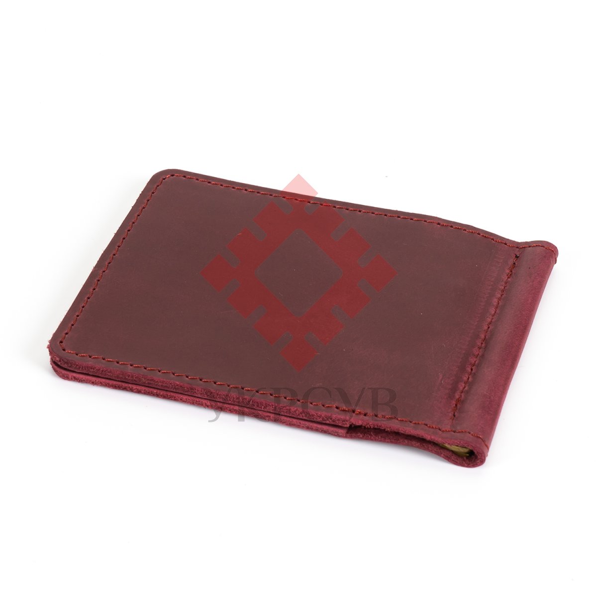 Зажим для грошей "Сонечко", бордоЗажим виконаний з натуральної шкіри та прикрашений візерунком, що виконаний у техніці тиснення. Такий зажим буде практичним, довговічним та зручним у використанні. Всередині є окремі два відділи для карток.Загальна інформація Матеріл: 100% шкіра