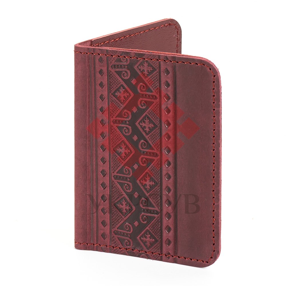 Обкладинка для ID картки "Вишивка", бордоОбкладинка виконана з натуральної шкіри з тисненням візерунку. Такий чохол буде надійно та довговічно захищати картки від пошкоджень.Загальна інформація: Матеріал: 100% шкіра |