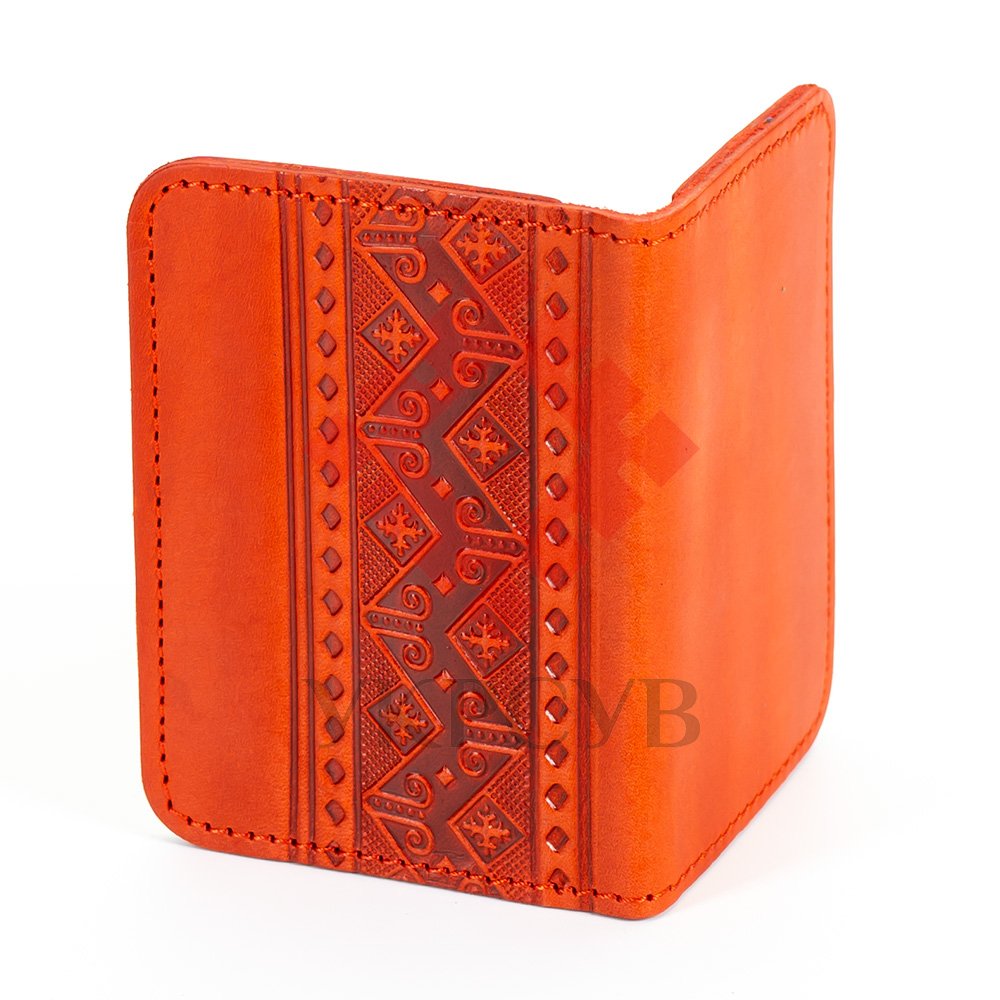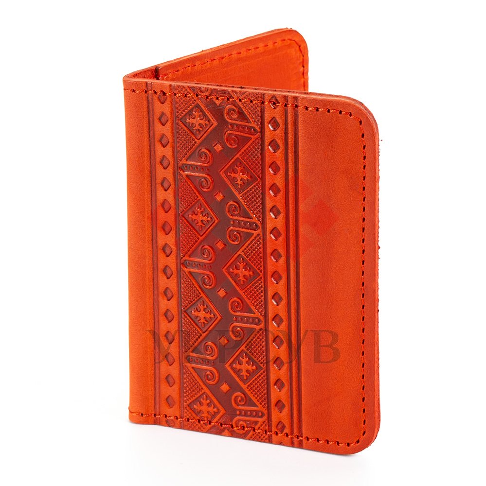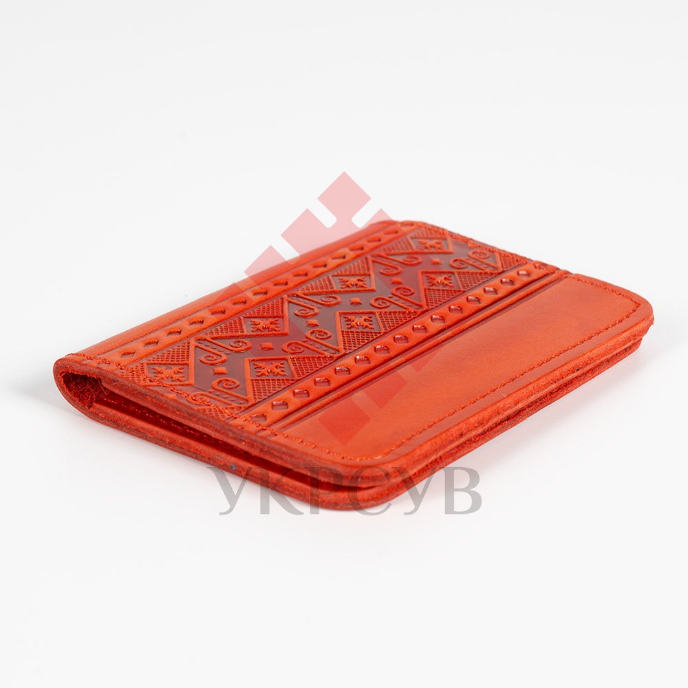 Обкладинка для ID картки "Вишивка", червонаОбкладинка виконана з натуральної шкіри з тисненням візерунку. Такий чохол буде надійно та довговічно захищати картки від пошкоджень.Загальна інформація: Матеріал: 100% шкіра |