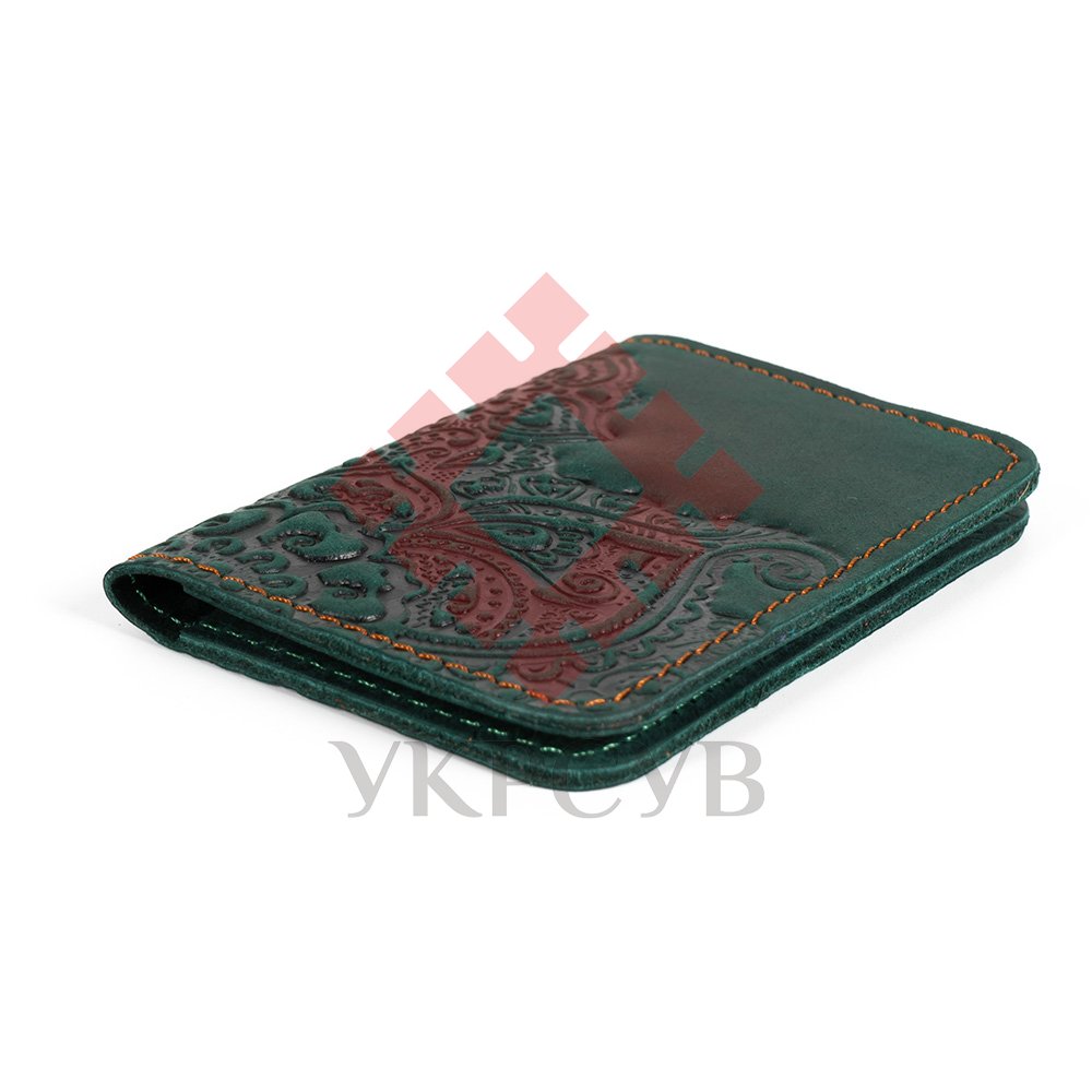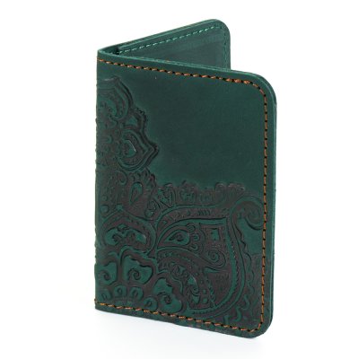 Обкладинка для ID картки "Квіти", темно-зеленаОбкладинка виконана з натуральної шкіри з тисненням візерунку. Такий чохол буде надійно та довговічно захищати картки від пошкоджень.Загальна інформація: Матеріал: 100% шкіра |