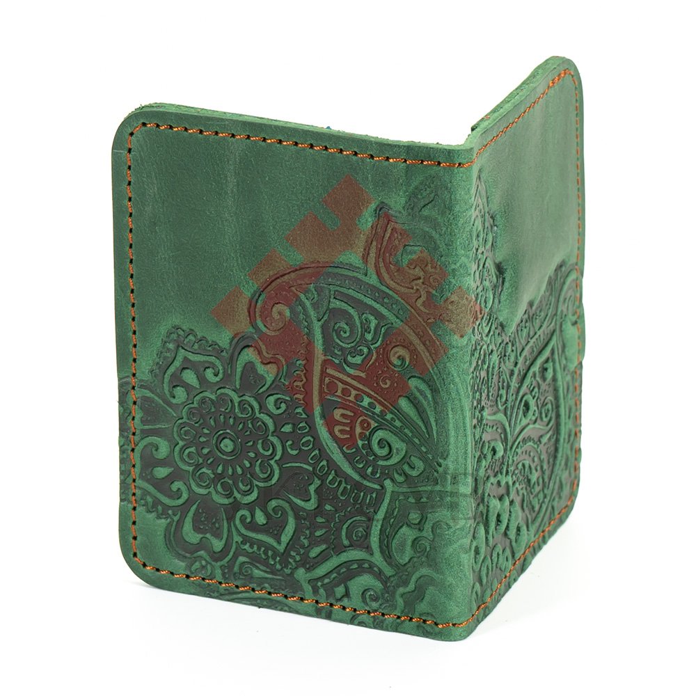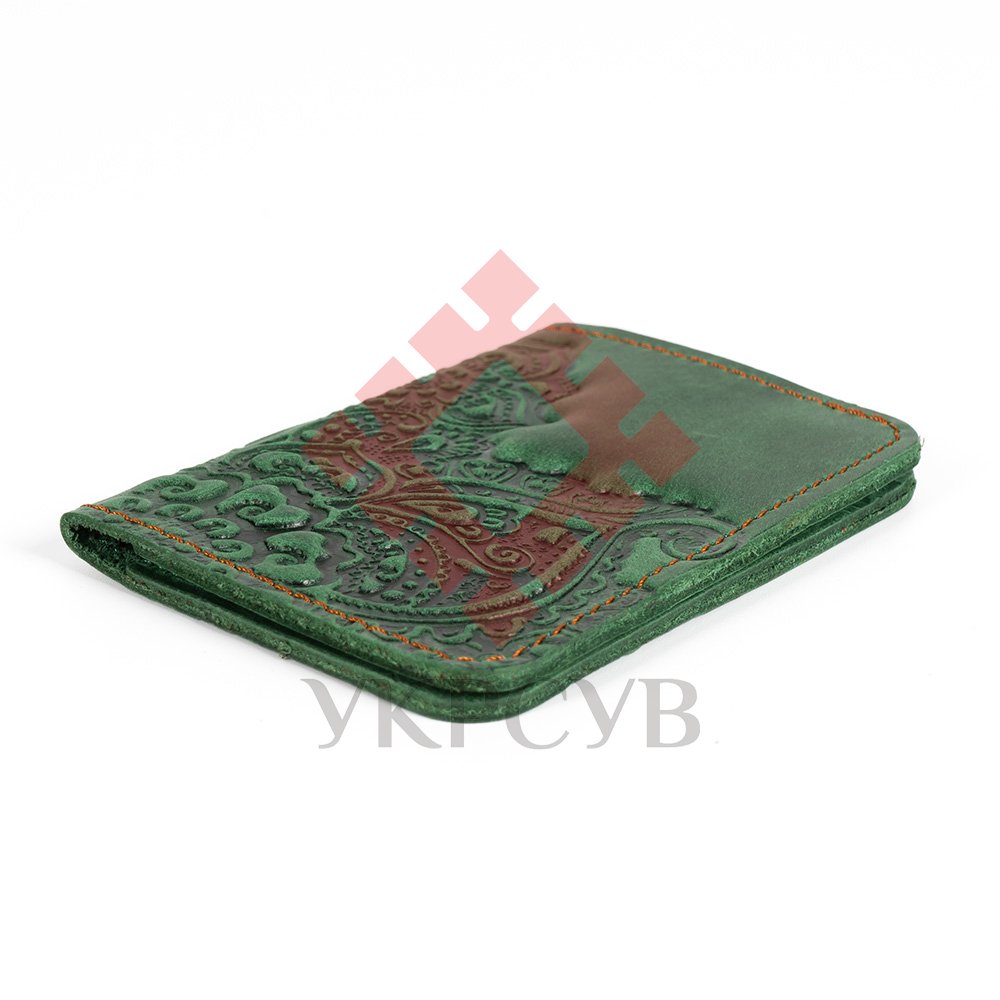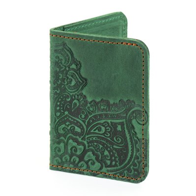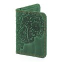 Обкладинка для ID картки "Квіти", зеленаОбкладинка виконана з натуральної шкіри з тисненням візерунку. Такий чохол буде надійно та довговічно захищати картки від пошкоджень.Загальна інформація: Матеріал: 100% шкіра |