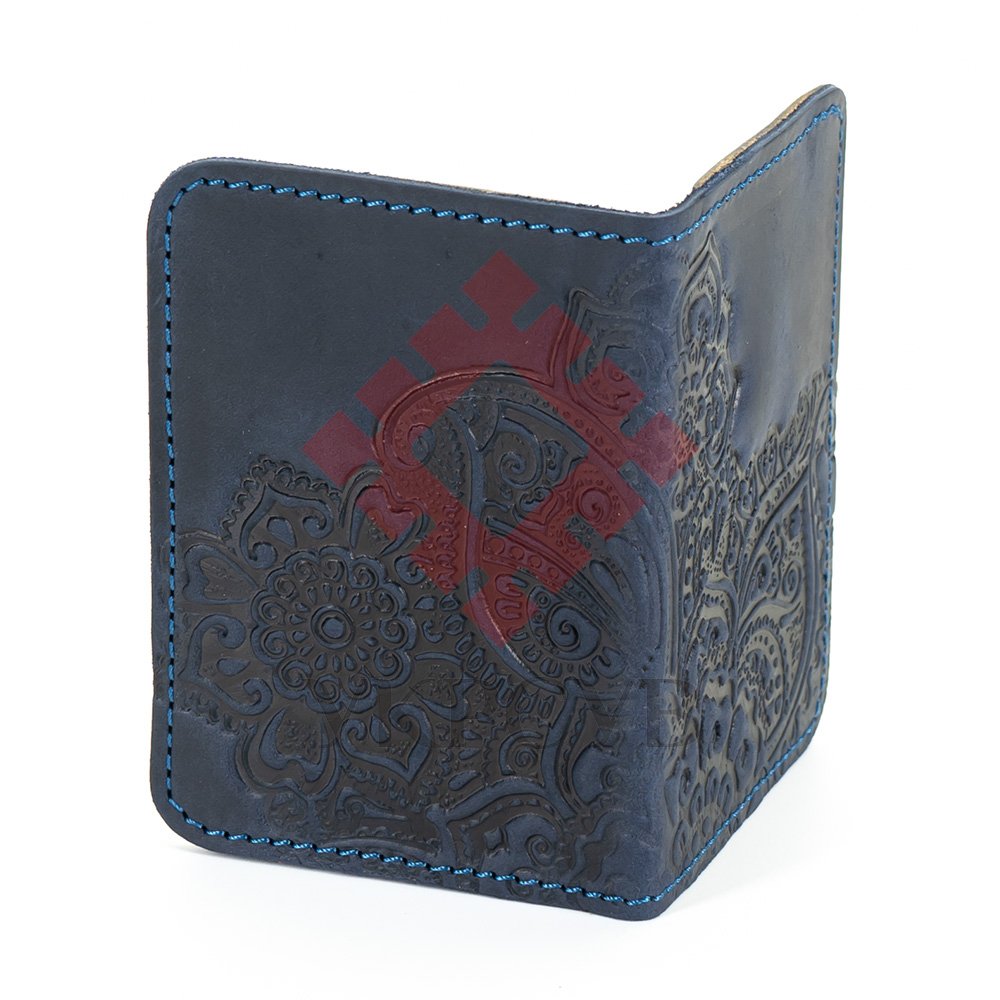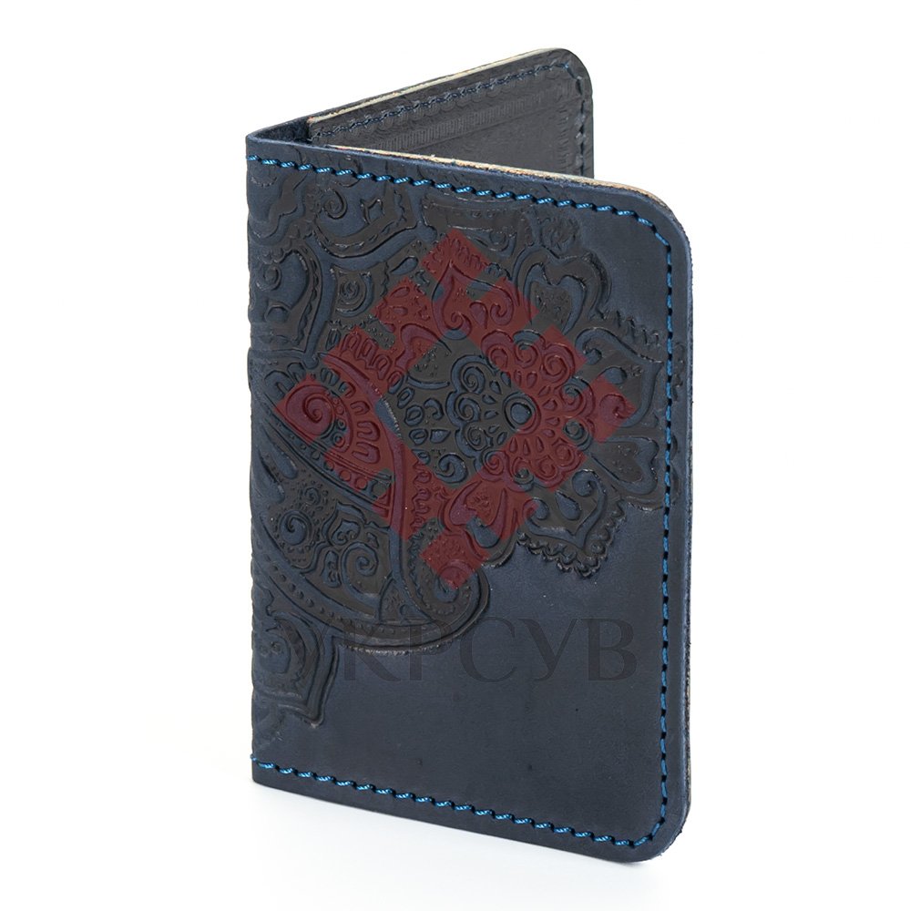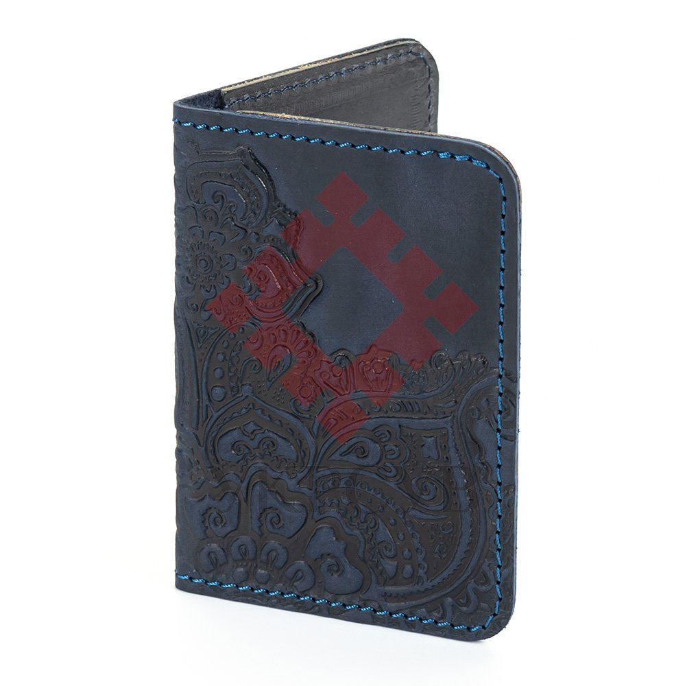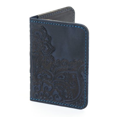 Обкладинка для ID картки "Квіти", темно-синяОбкладинка виконана з натуральної шкіри з тисненням візерунку. Такий чохол буде надійно та довговічно захищати картки від пошкоджень.Загальна інформація: Матеріал: 100% шкіра |