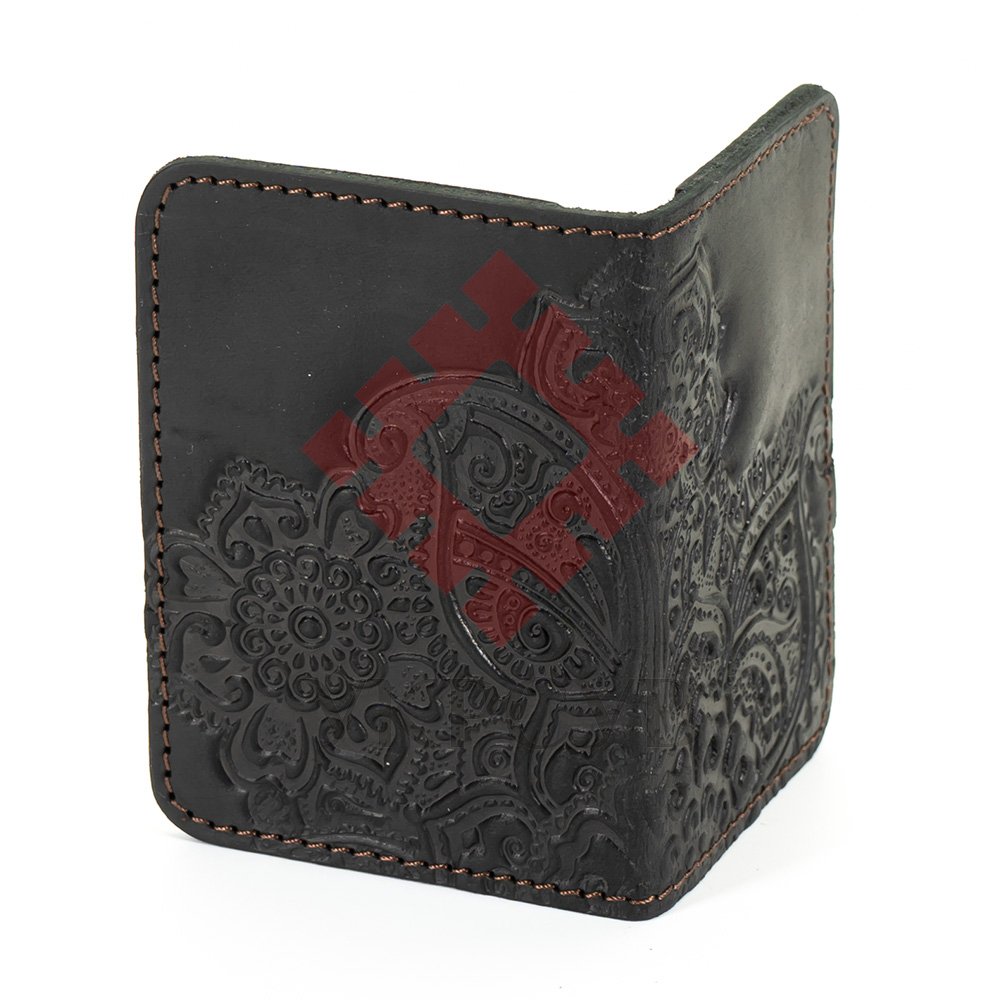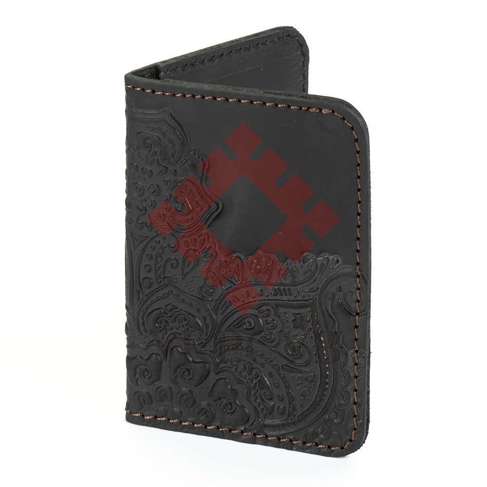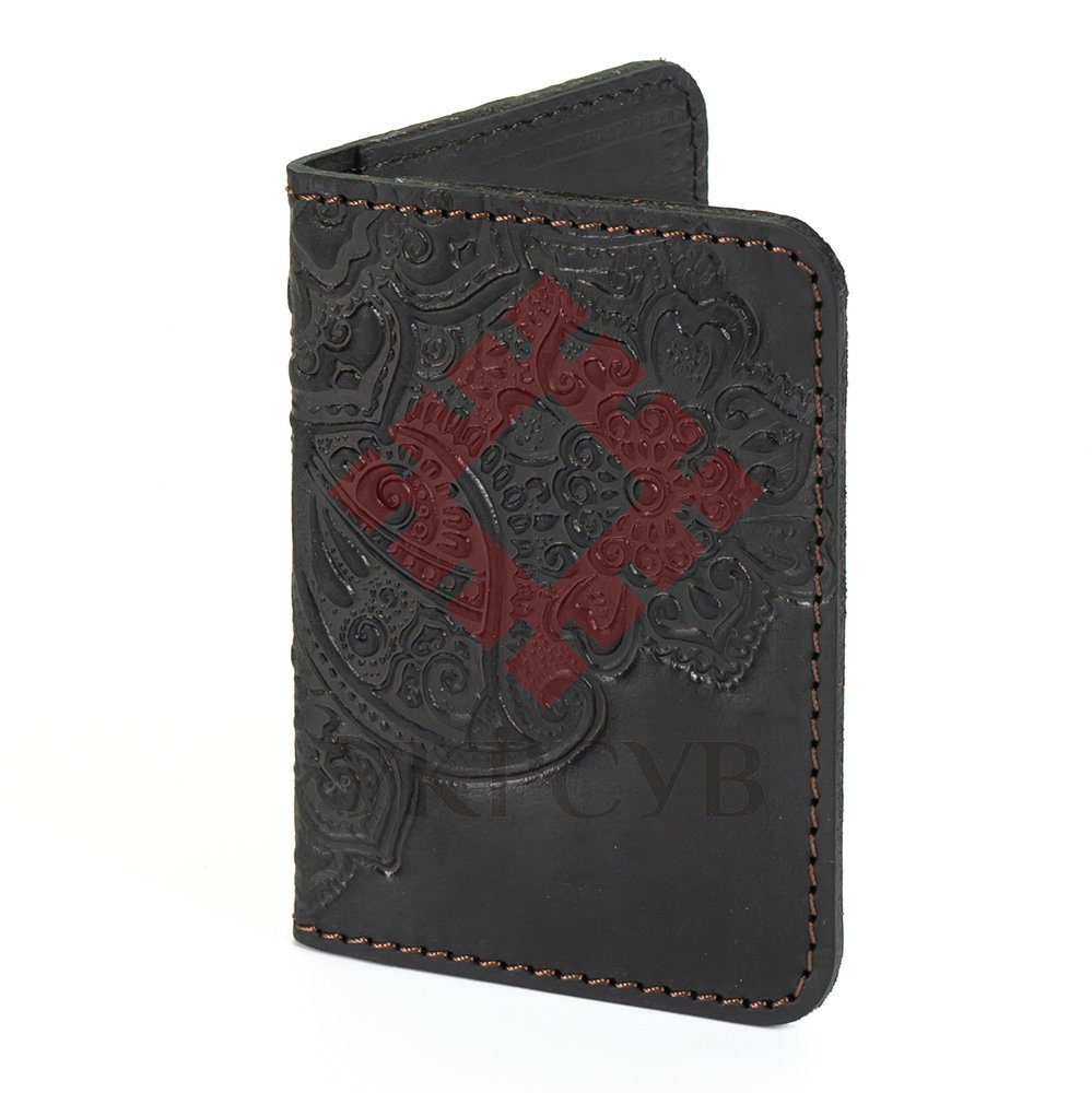 Обкладинка для ID картки "Квіти", чорнаОбкладинка виконана з натуральної шкіри з тисненням візерунку. Такий чохол буде надійно та довговічно захищати картки від пошкоджень.Загальна інформація: Матеріал: 100% шкіра |