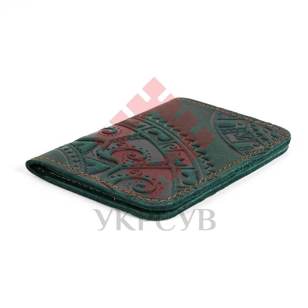 Обкладинка для ID картки "Півкола", темно-зеленаОбкладинка виконана з натуральної шкіри з тисненням візерунку. Такий чохол буде надійно та довговічно захищати картки від пошкоджень.Загальна інформація: Матеріал: 100% шкіра |