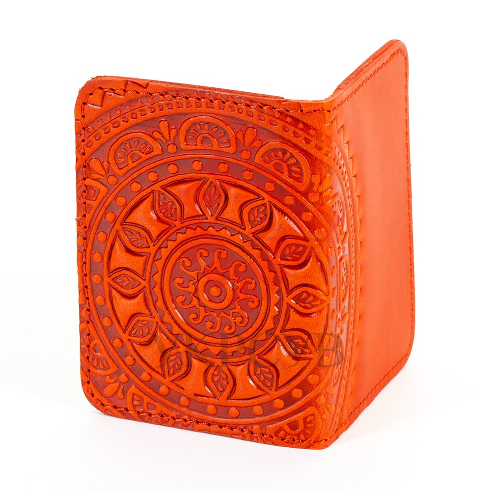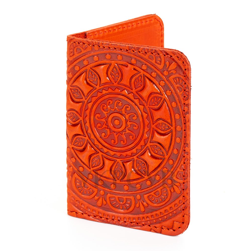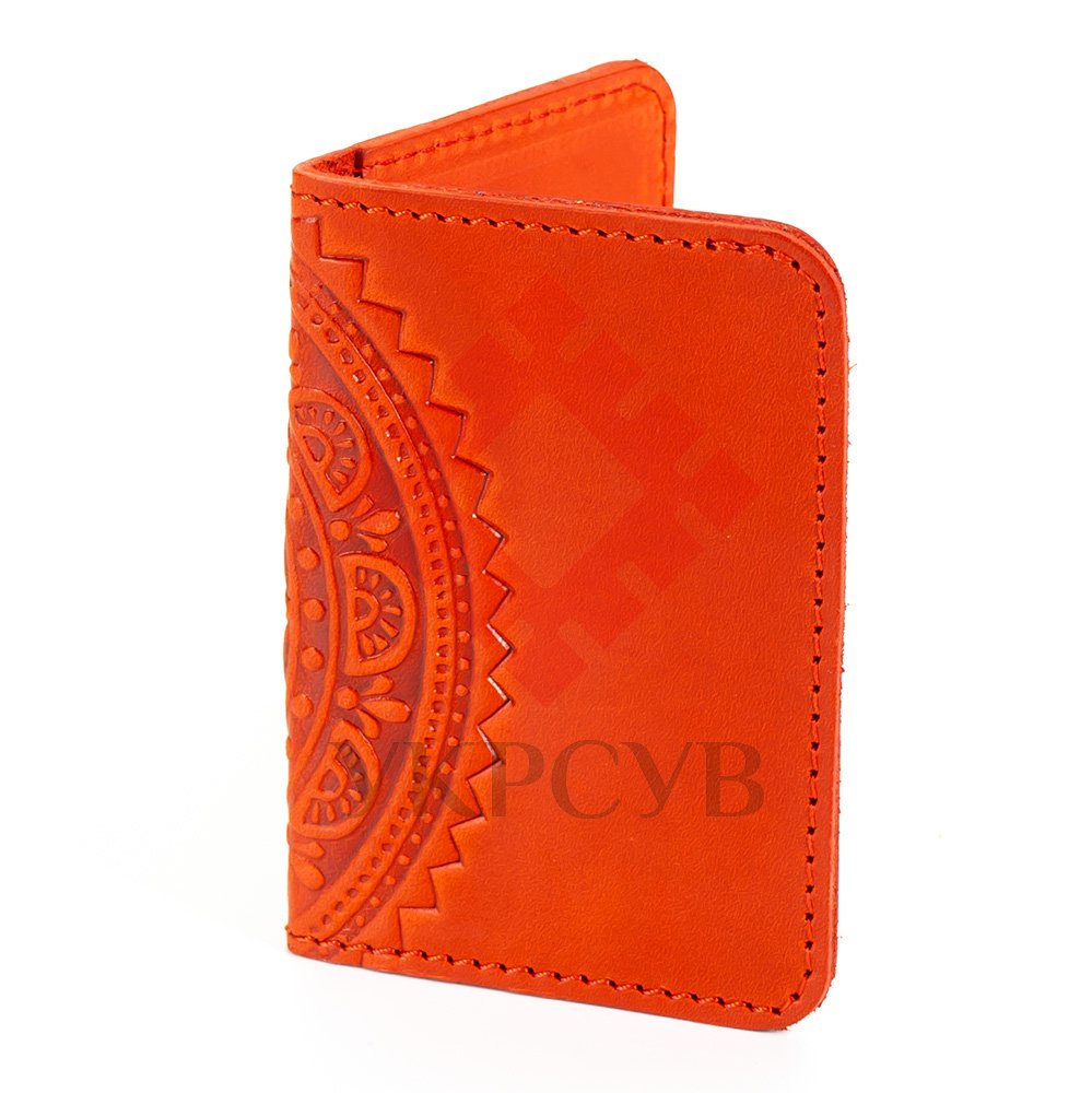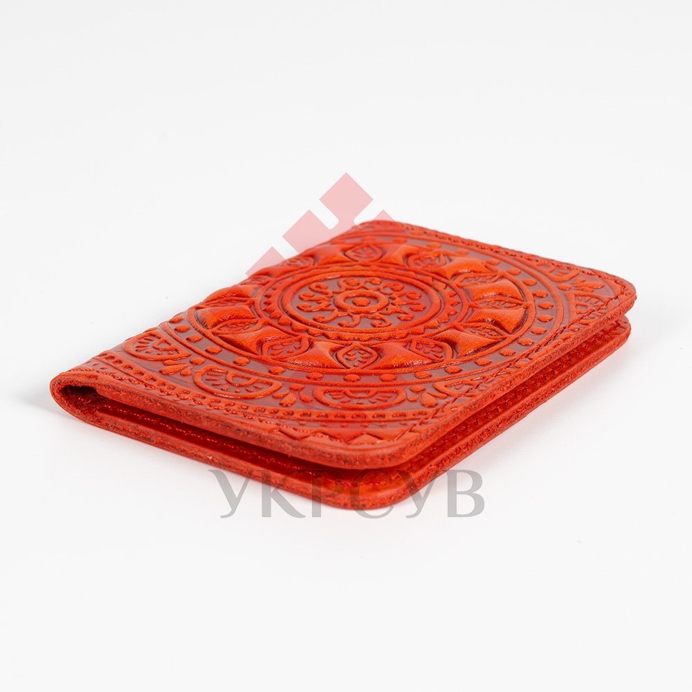 Обкладинка для ID картки "Сонечко", червонаОбкладинка виконана з натуральної шкіри з тисненням візерунку. Такий чохол буде надійно та довговічно захищати картки від пошкоджень.Загальна інформація: Матеріал: 100% шкіра |