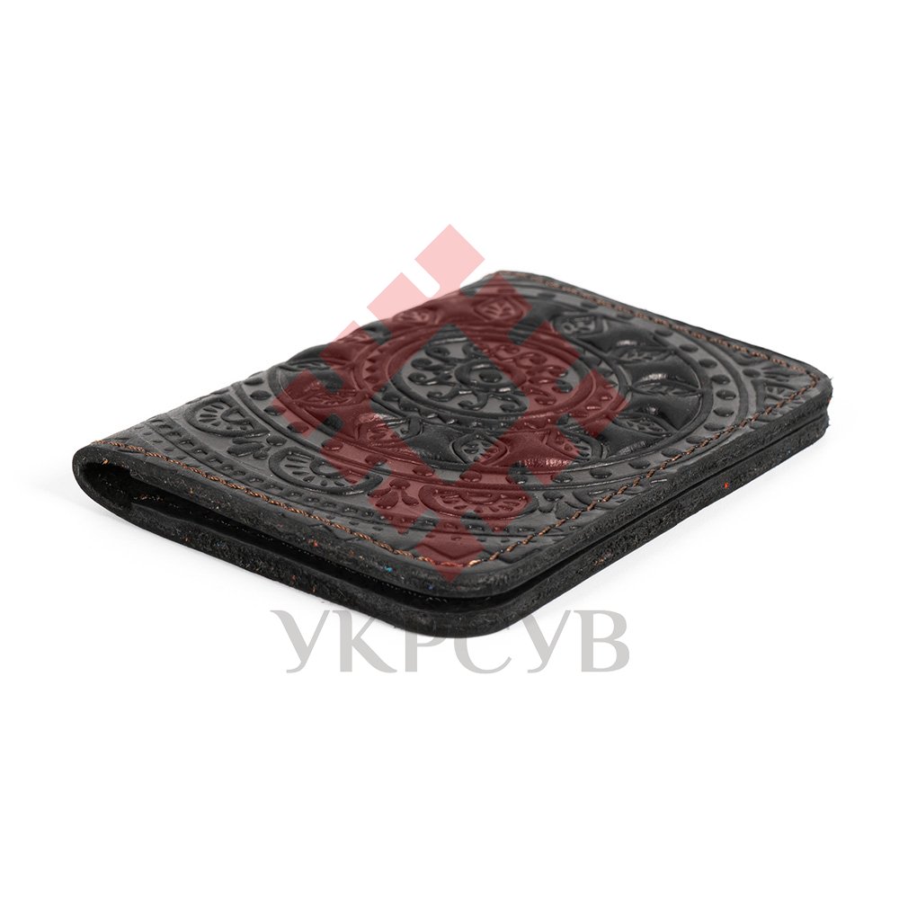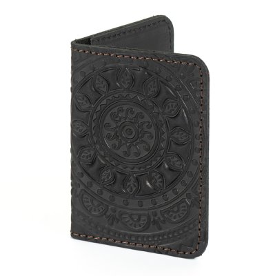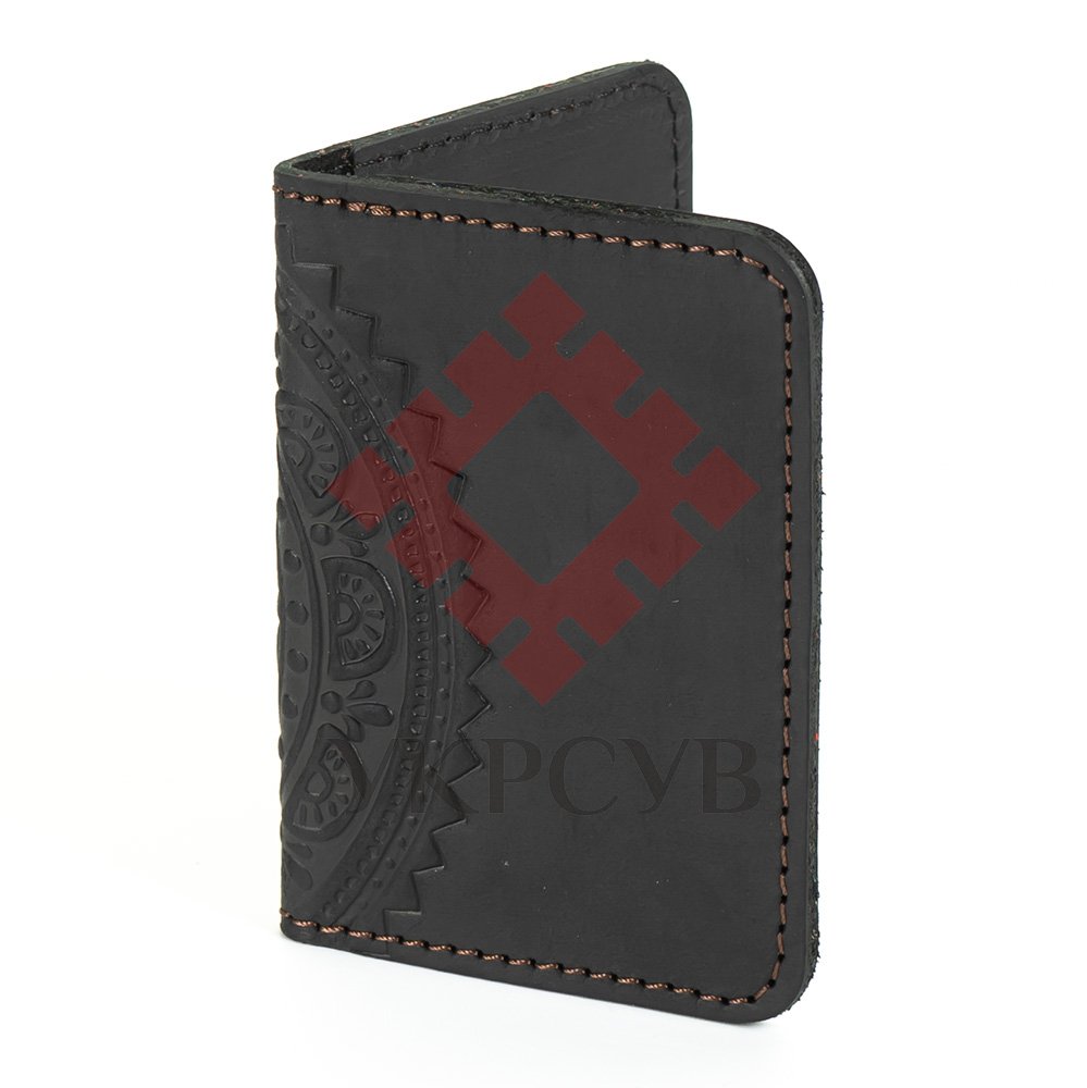 Обкладинка для ID картки "Сонечко", чорнаОбкладинка виконана з натуральної шкіри з тисненням візерунку. Такий чохол буде надійно та довговічно захищати картки від пошкоджень.Загальна інформація: Матеріал: 100% шкіра |