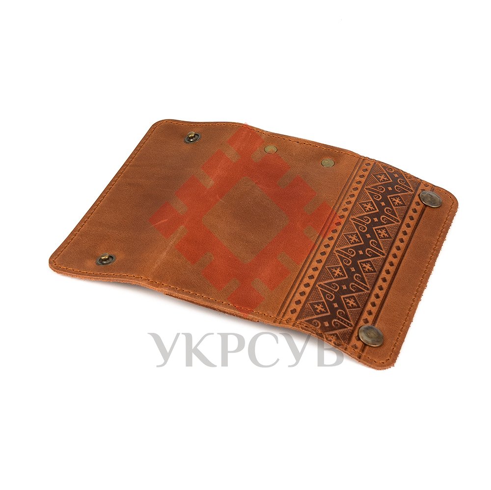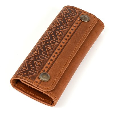 Ключниця "Вишивка"Ключниця виконана з натуральної шкіри з тисненням візерунку та є зручним аксесуаром для зберігання ключей. Загальна інформація: Матеріал: 100% шкіра |