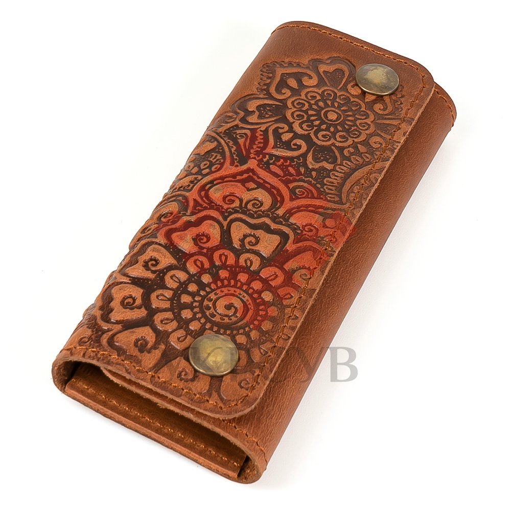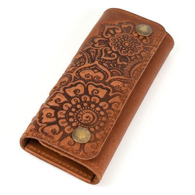 Ключниця "Вишивка"Ключниця виконана з натуральної шкіри з тисненням візерунку та є зручним аксесуаром для зберігання ключей. Загальна інформація: Матеріал: 100% шкіра |