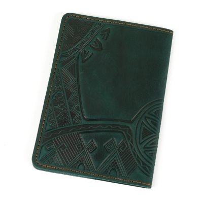Обкладинка для паспорта "Гуцульський візерунок", темно-зелена (25294)