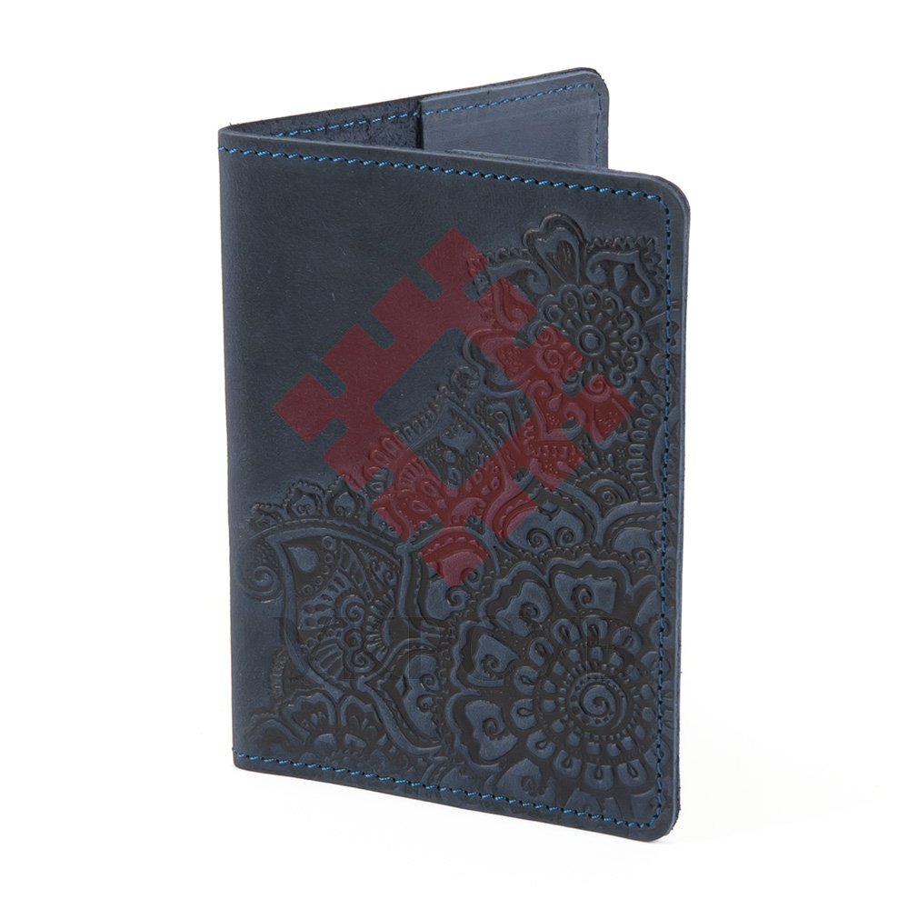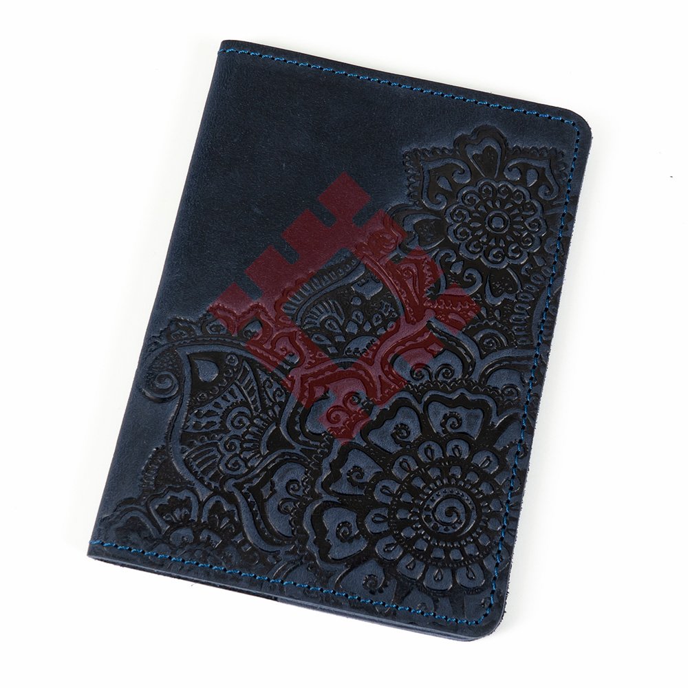 Обкладинка для паспорта "Квіти", темно-синя (25316)