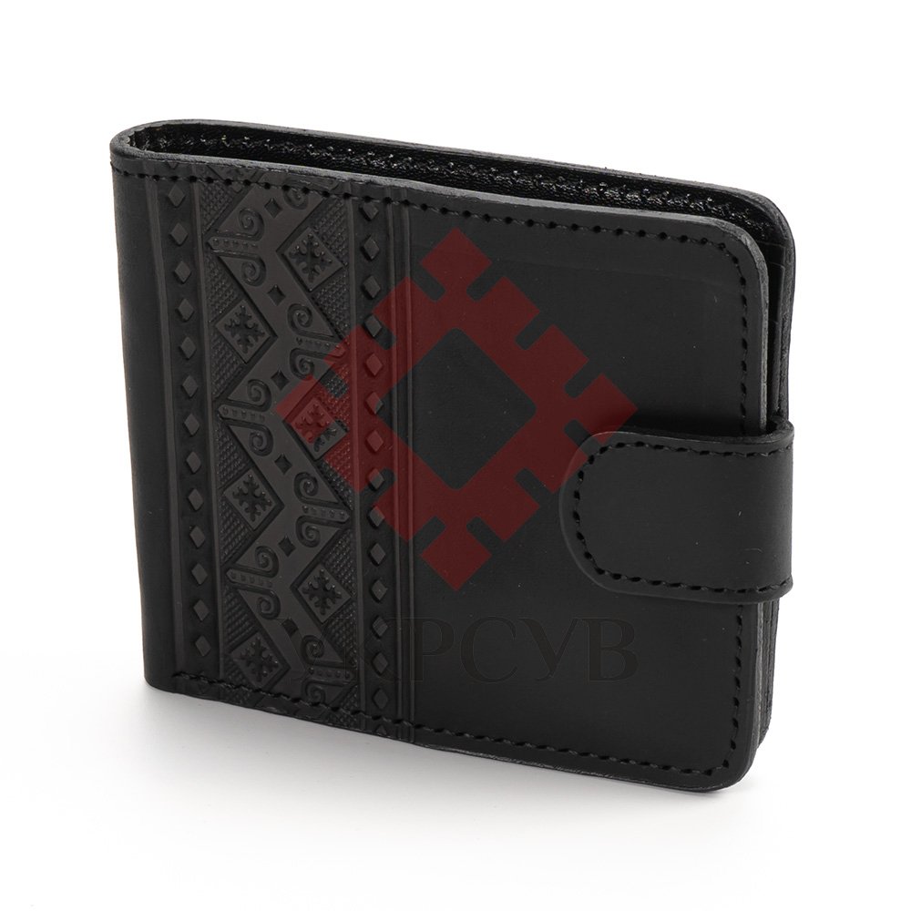 Гаманець малий "Вишивка"Гаманець виконаний з натуральної шкіри, з тисненням візерунку. Гаманець має два відділи для купюр, один відділ для монет, один - для фото та 5 відділів для карток. Загальна інформація: Матеріал: 100% шкіра
