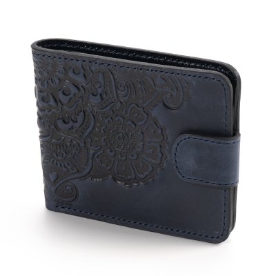 Гаманець малий "Квіти"Гаманець виконаний з натуральної шкіри, з тисненням візерунку. Гаманець має два відділи для купюр, один відділ для монет, один - для фото та 5 відділів для карток. Загальна інформація: Матеріал: 100% шкіра