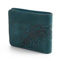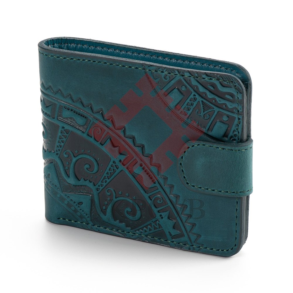 Гаманець малий "Півкола"Гаманець виконаний з натуральної шкіри, з тисненням візерунку. Гаманець має два відділи для купюр, один відділ для монет, один - для фото та 5 відділів для карток. Загальна інформація: Матеріал: 100% шкіра
