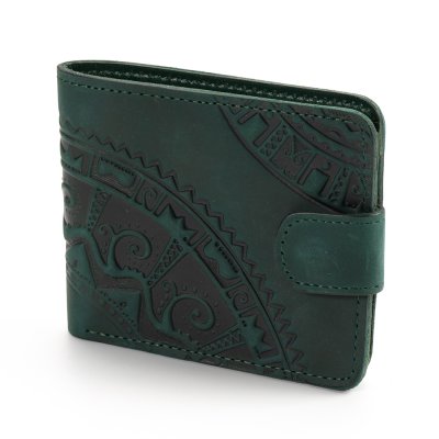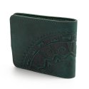 Гаманець малий "Півкола"Гаманець виконаний з натуральної шкіри, з тисненням візерунку. Гаманець має два відділи для купюр, один відділ для монет, один - для фото та 5 відділів для карток. Загальна інформація: Матеріал: 100% шкіра