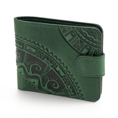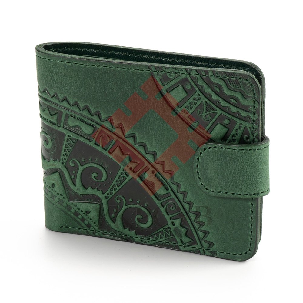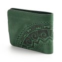Гаманець малий "Півкола"Гаманець виконаний з натуральної шкіри, з тисненням візерунку. Гаманець має два відділи для купюр, один відділ для монет, один - для фото та 5 відділів для карток. Загальна інформація: Матеріал: 100% шкіра