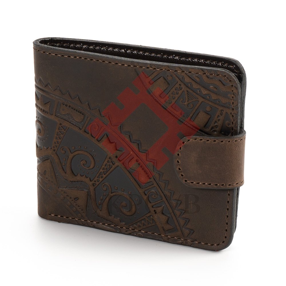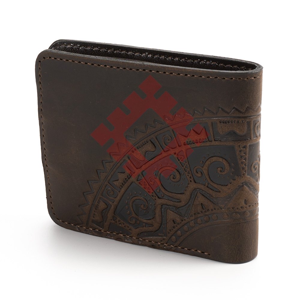 Гаманець малий "Півкола"Гаманець виконаний з натуральної шкіри, з тисненням візерунку. Гаманець має два відділи для купюр, один відділ для монет, один - для фото та 5 відділів для карток. Загальна інформація: Матеріал: 100% шкіра