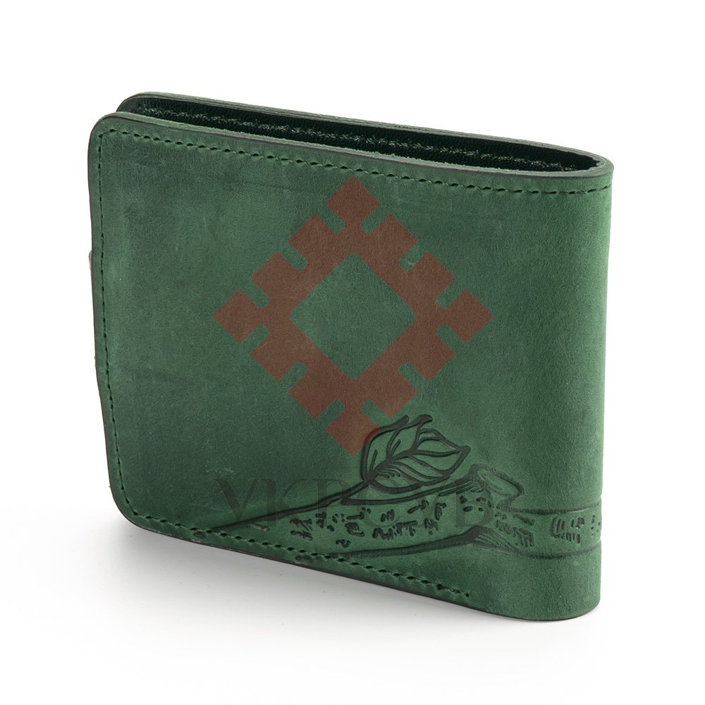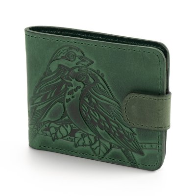 Гаманець малий "Пташки"Гаманець виконаний з натуральної шкіри, з тисненням візерунку. Гаманець має два відділи для купюр, один відділ для монет, один - для фото та 5 відділів для карток. Загальна інформація: Матеріал: 100% шкіра