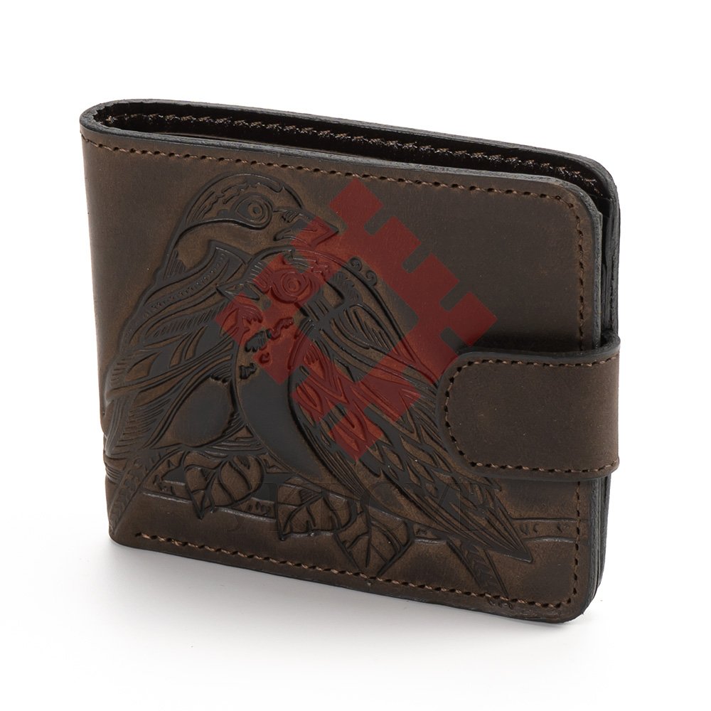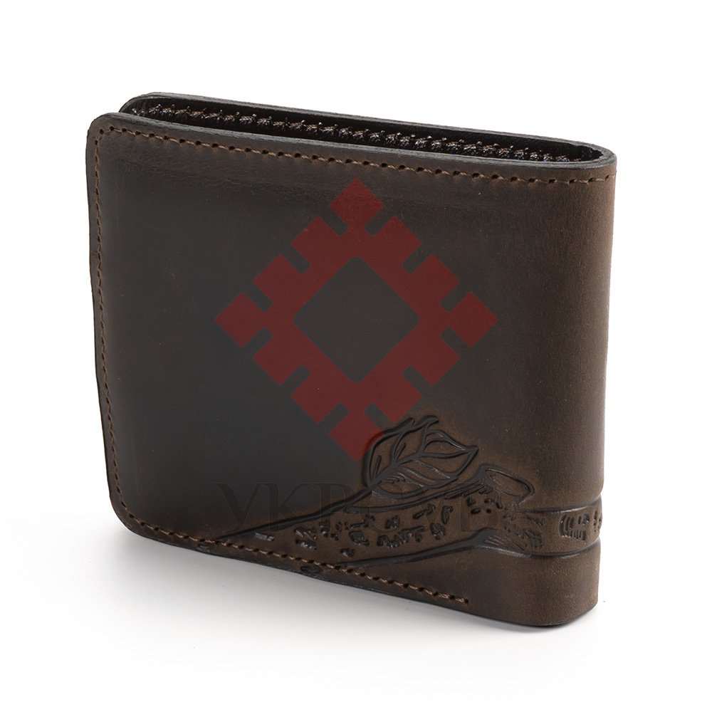 Гаманець малий "Пташки"Гаманець виконаний з натуральної шкіри, з тисненням візерунку. Гаманець має два відділи для купюр, один відділ для монет, один - для фото та 5 відділів для карток. Загальна інформація: Матеріал: 100% шкіра