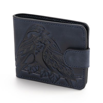 Гаманець малий "Пташки"Гаманець виконаний з натуральної шкіри, з тисненням візерунку. Гаманець має два відділи для купюр, один відділ для монет, один - для фото та 5 відділів для карток. Загальна інформація: Матеріал: 100% шкіра