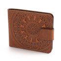 Гаманець малий "Сонечко"Гаманець виконаний з натуральної шкіри, з тисненням візерунку. Гаманець має два відділи для купюр, один відділ для монет, один - для фото та 5 відділів для карток. Загальна інформація: Матеріал: 100% шкіра