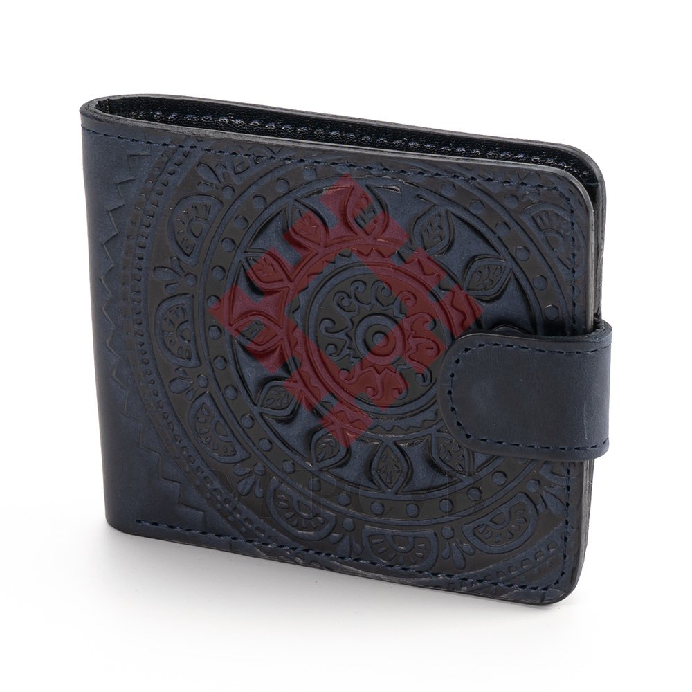 Гаманець малий "Сонечко"Гаманець виконаний з натуральної шкіри, з тисненням візерунку. Гаманець має два відділи для купюр, один відділ для монет, один - для фото та 5 відділів для карток. Загальна інформація: Матеріал: 100% шкіра