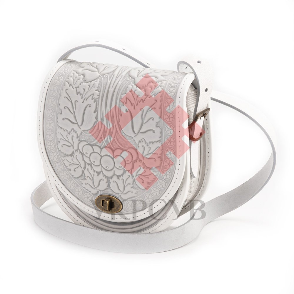 Сумка "Калина" виготовлена з якісної, щільної натуральної шкіри. Декоративною родзинкою сумки є оригінальний орнамент в українському стилі, зроблений методом гарячого тиснення.
