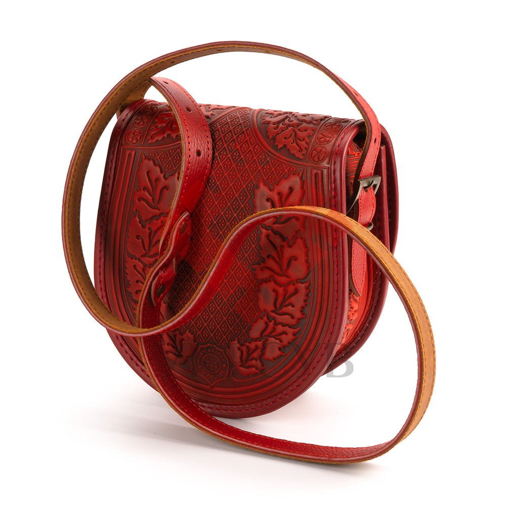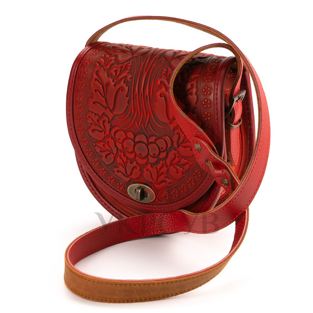 Сумка "Калина" виготовлена з якісної, щільної натуральної шкіри. Декоративною родзинкою сумки є оригінальний орнамент в українському стилі, зроблений методом гарячого тиснення.