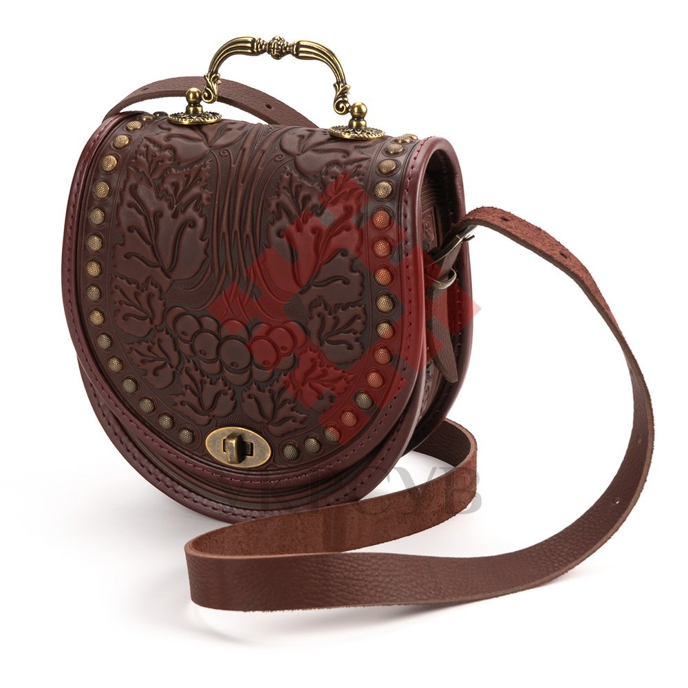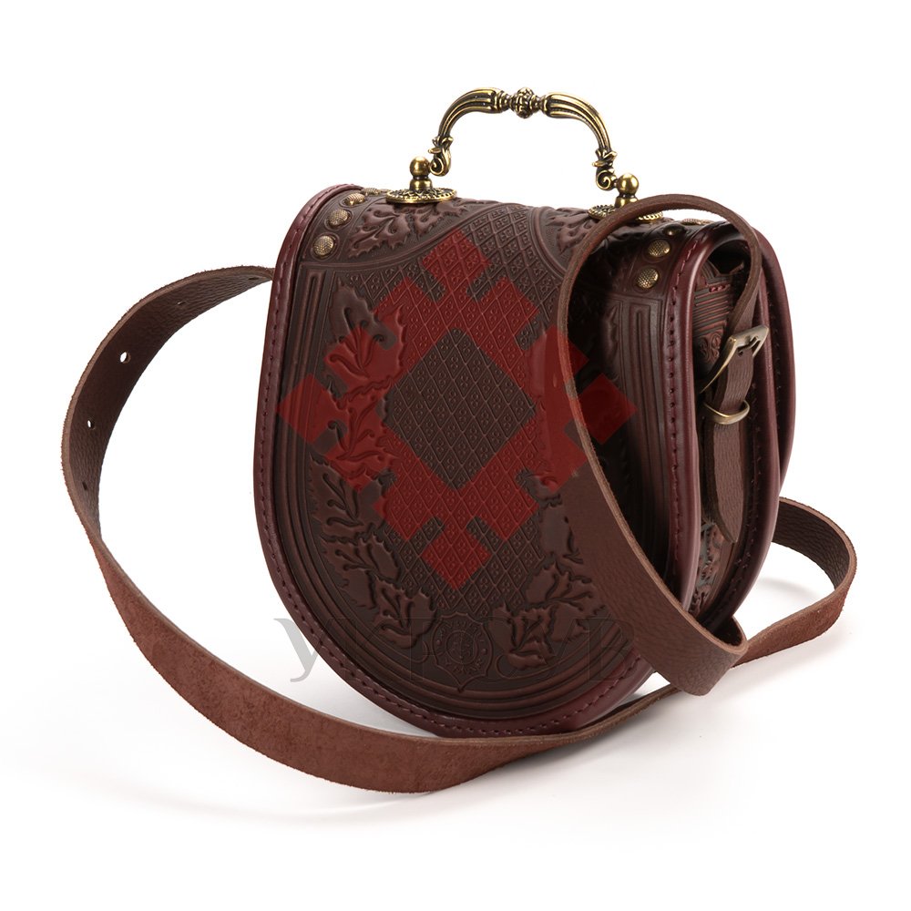 Сумка шкіряна "Калина", з металевою ручкою, бордова (27596)