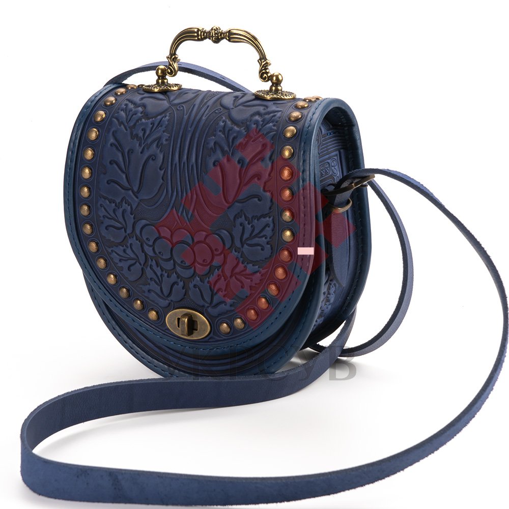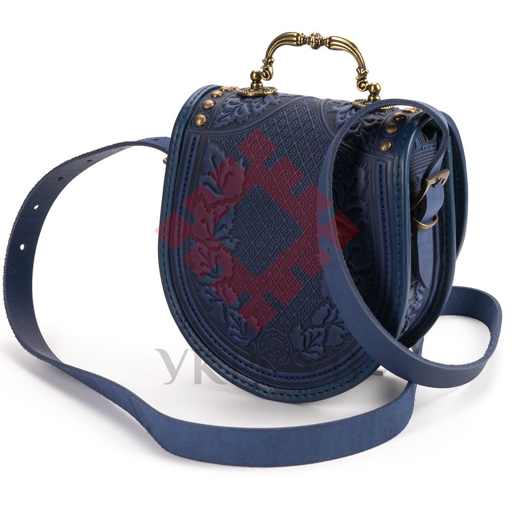 Сумка шкіряна "Калина", з металевою ручкою, синя (27603)