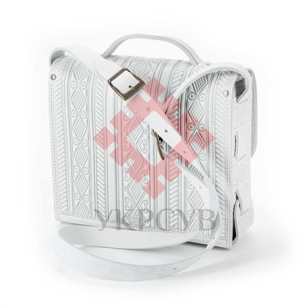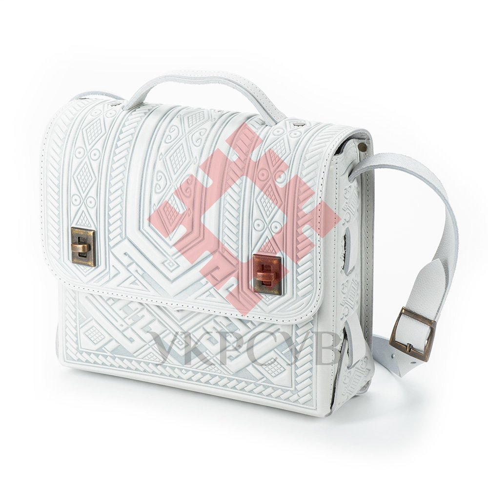 Портфель шкіряний "Проект", виготовлений з якісної, щільної натуральної шкіри. Декоративною родзинкою сумки є оригінальний орнамент в українському стилі, зроблений методом гарячого тиснення.