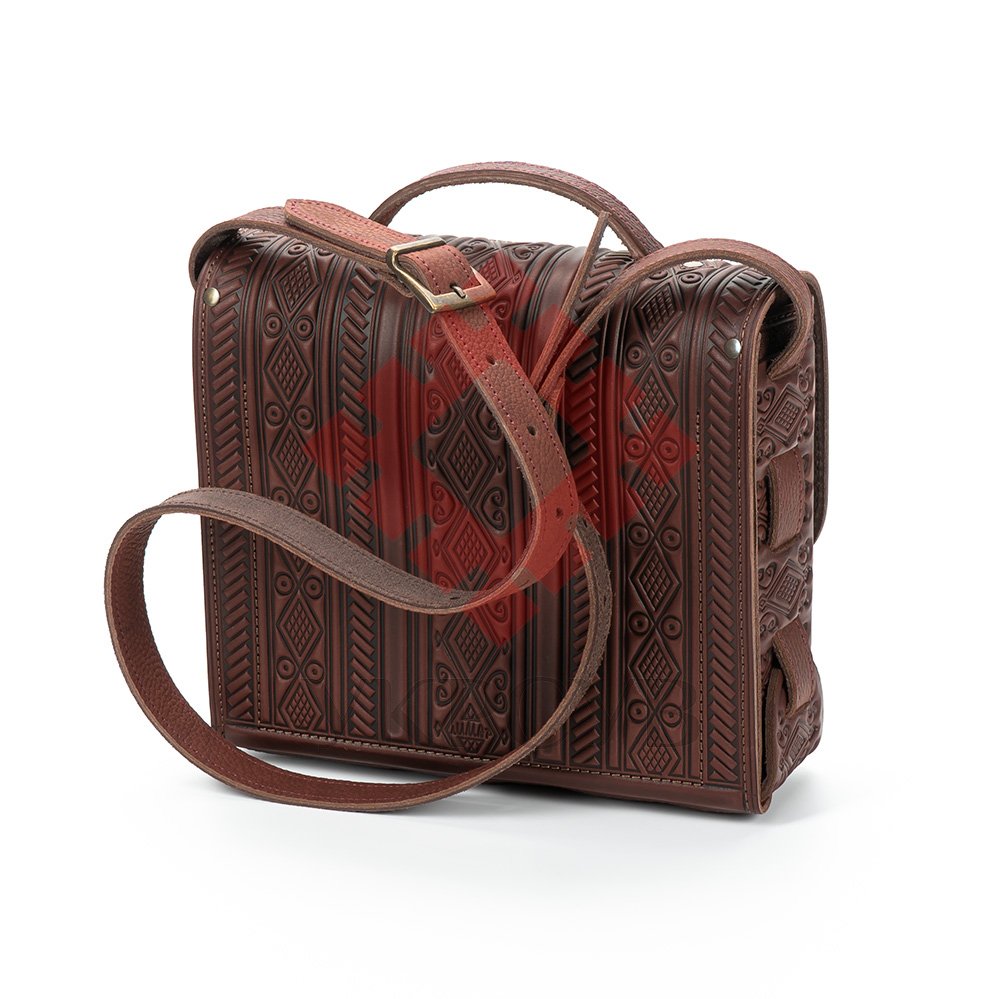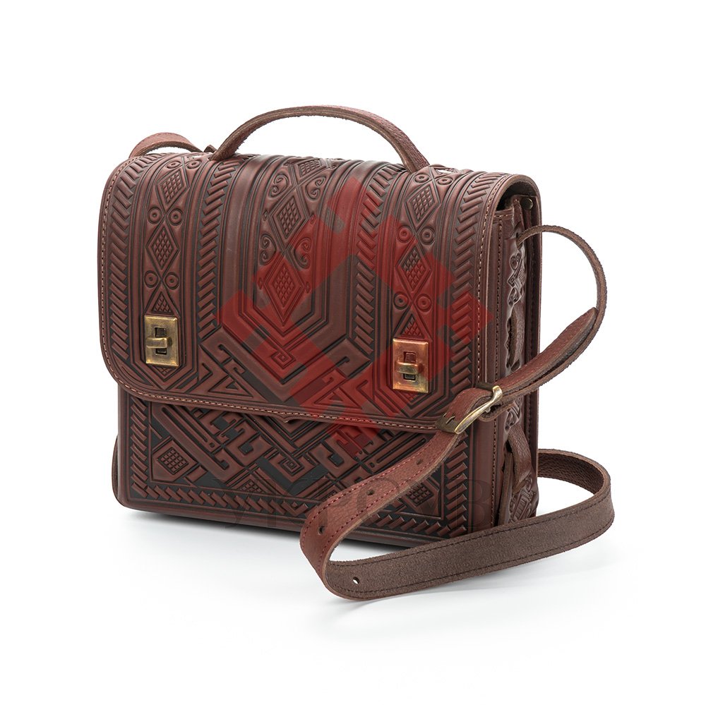 Портфель шкіряний "Проект", виготовлений з якісної, щільної натуральної шкіри. Декоративною родзинкою сумки є оригінальний орнамент в українському стилі, зроблений методом гарячого тиснення.