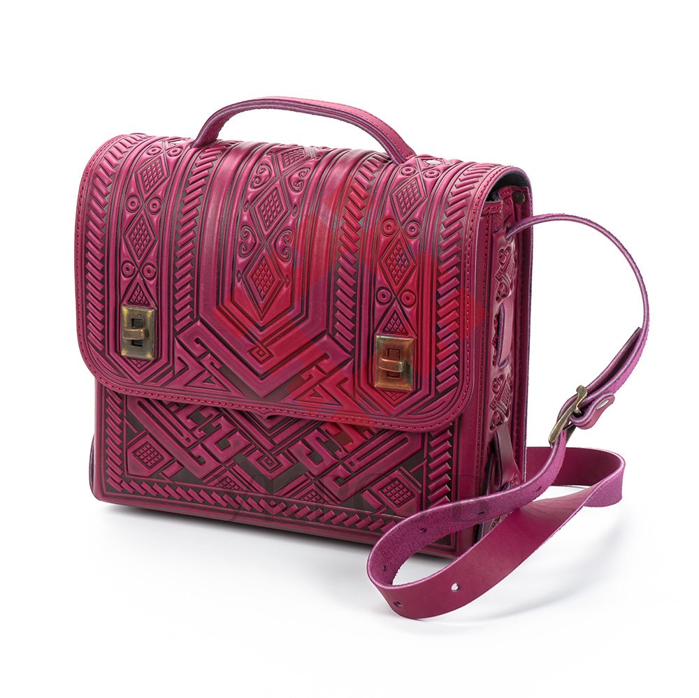 Портфель шкіряний "Проект", виготовлений з якісної, щільної натуральної шкіри. Декоративною родзинкою сумки є оригінальний орнамент в українському стилі, зроблений методом гарячого тиснення.