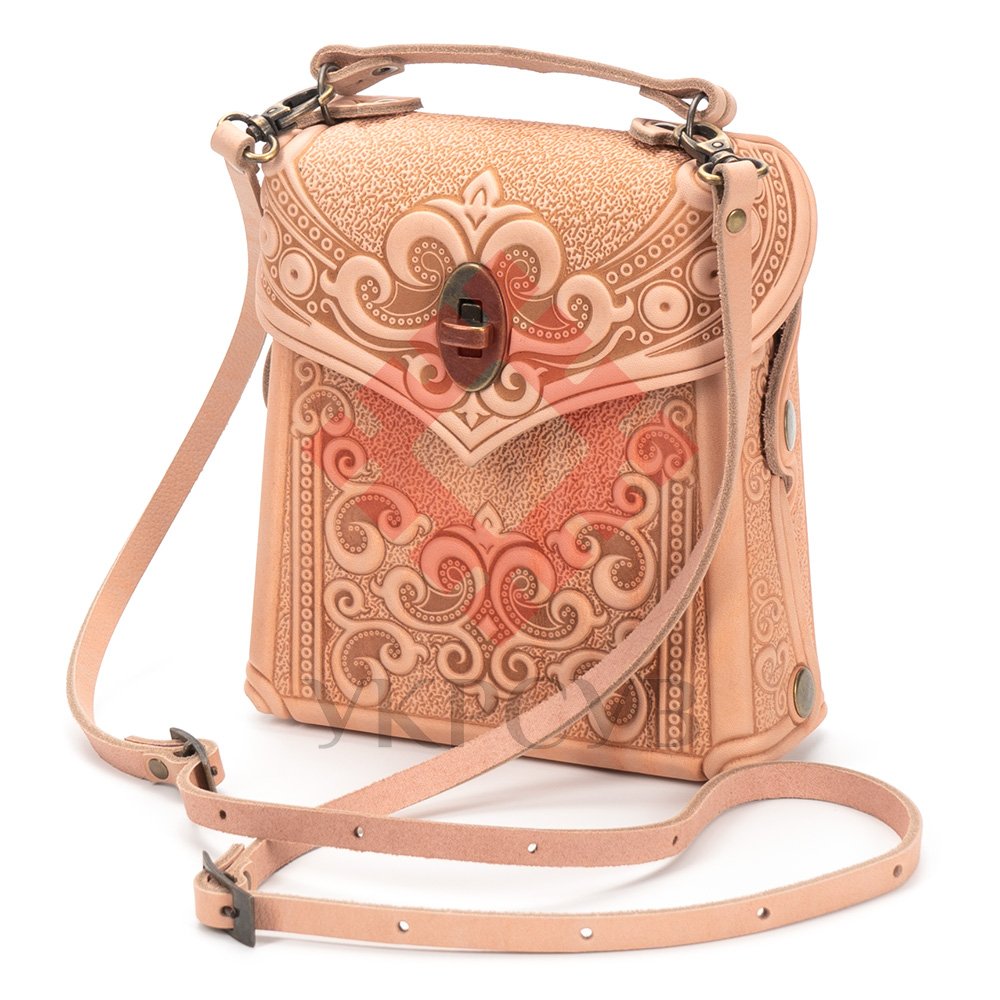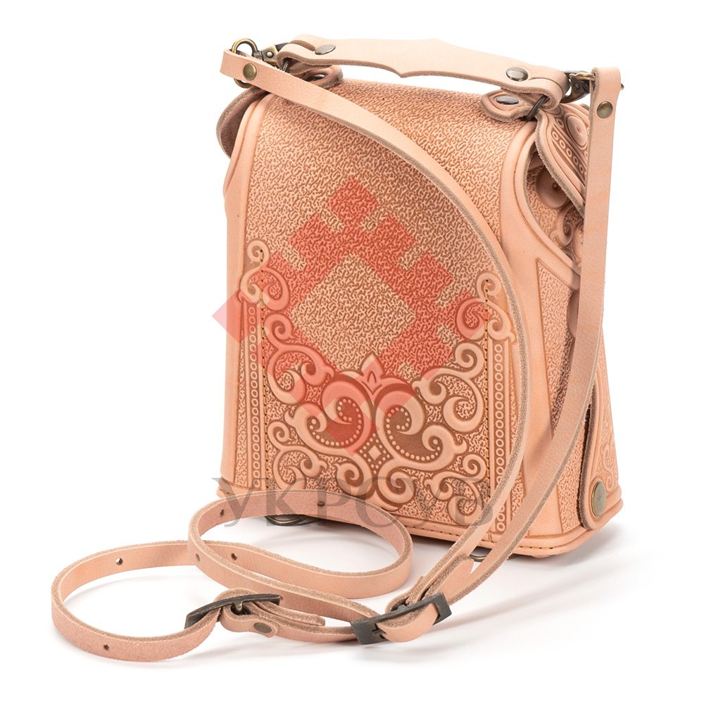 Сумка-рюкзак шкіряна "Венеція", виготовлена з якісної, щільної натуральної шкіри. Декоративною родзинкою сумки є оригінальний орнамент в українському стилі, зроблений методом гарячого тиснення.
