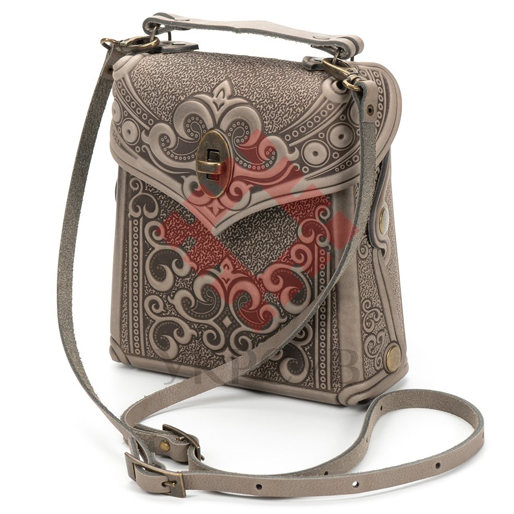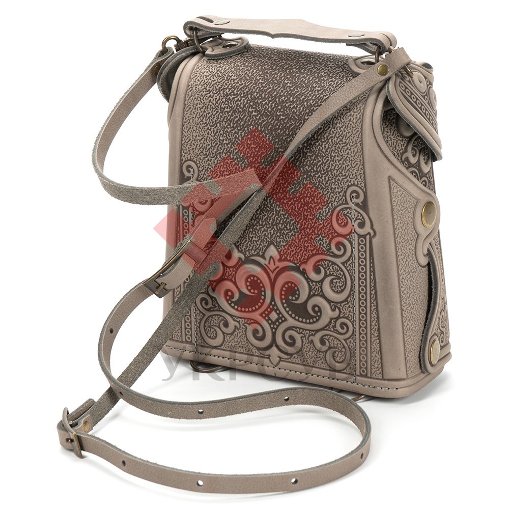 Сумка-рюкзак шкіряна "Венеція", виготовлена з якісної, щільної натуральної шкіри. Декоративною родзинкою сумки є оригінальний орнамент в українському стилі, зроблений методом гарячого тиснення.