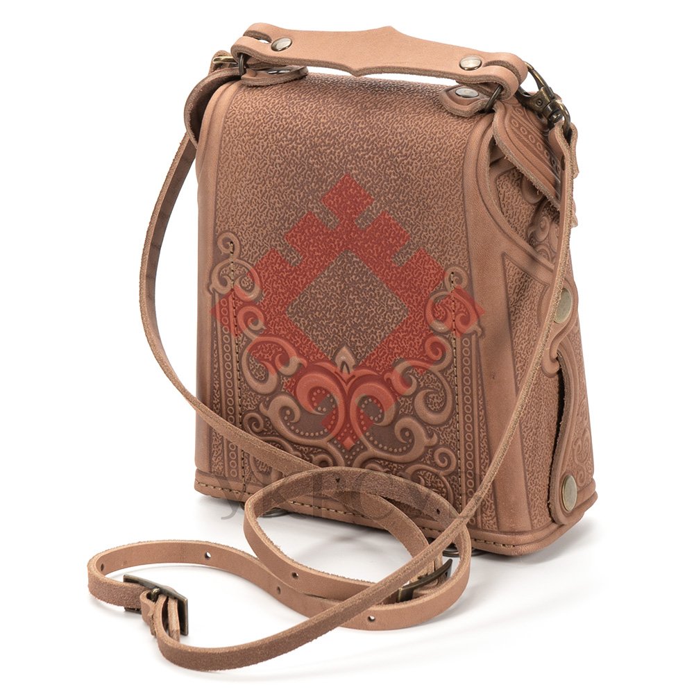 Сумка-рюкзак шкіряна "Венеція", виготовлена з якісної, щільної натуральної шкіри. Декоративною родзинкою сумки є оригінальний орнамент в українському стилі, зроблений методом гарячого тиснення.