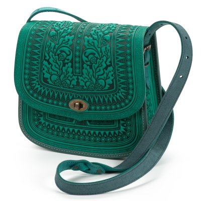 Сумка "Мисливська" виготовлена з якісної, щільної натуральної шкіри. Декоративною родзинкою сумки є оригінальний орнамент, зроблений методом гарячого тиснення.