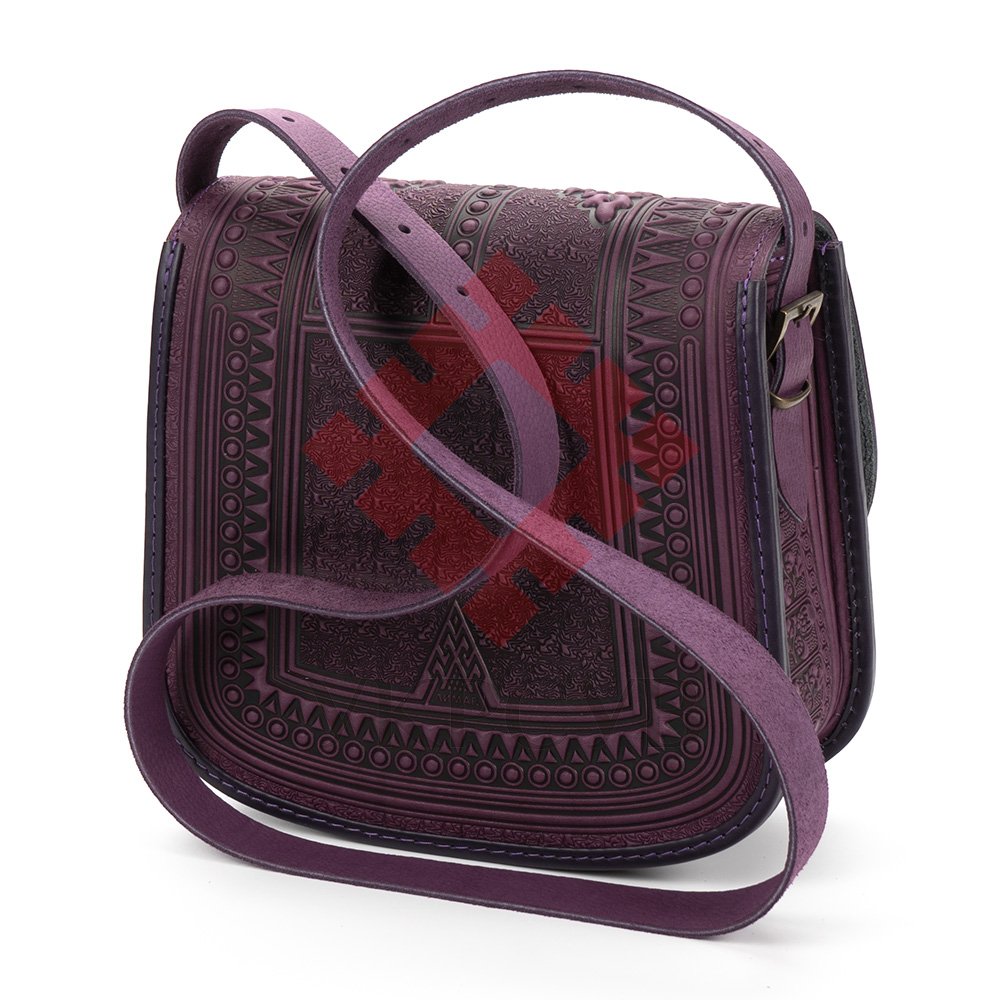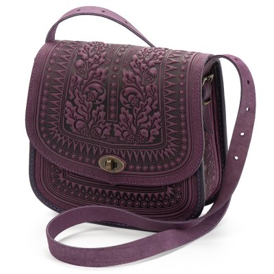 Сумка шкіряна "Мисливська", фіолетова (25681)