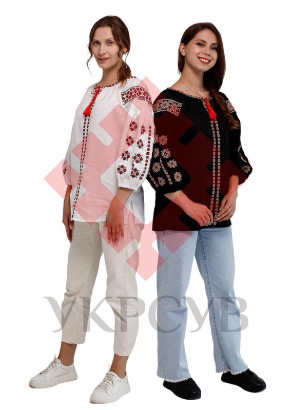 Вишиванка жіноча Слобожанка - ВсеславаВишиванка виготовлена з натурального 100% льону та прикрашена делікатною традиційною вишивкою хрестиком у чорно-червоних тонах. Загальна інформація: Тканина: 100% - льон Догляд: Прання:
